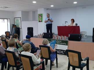 Presentación del libro "Nora" a cargo de su autora Mª Dolores López de Soria Vega, componente del cuarteto de pulso y púa y del coro de esta Casa, que fue presentada por Antonio Martín Jiménez, director de los citados grupos musicales. Relato de las vivencias infantiles que marcaron la vida de "Loli", como la llamamos sus amigos, y relato de sus emociones y lucha ante los problemas que nos presenta la vida en cierto momento, teniendo que superarse ante la adversidad y el desconocimiento de ellos.