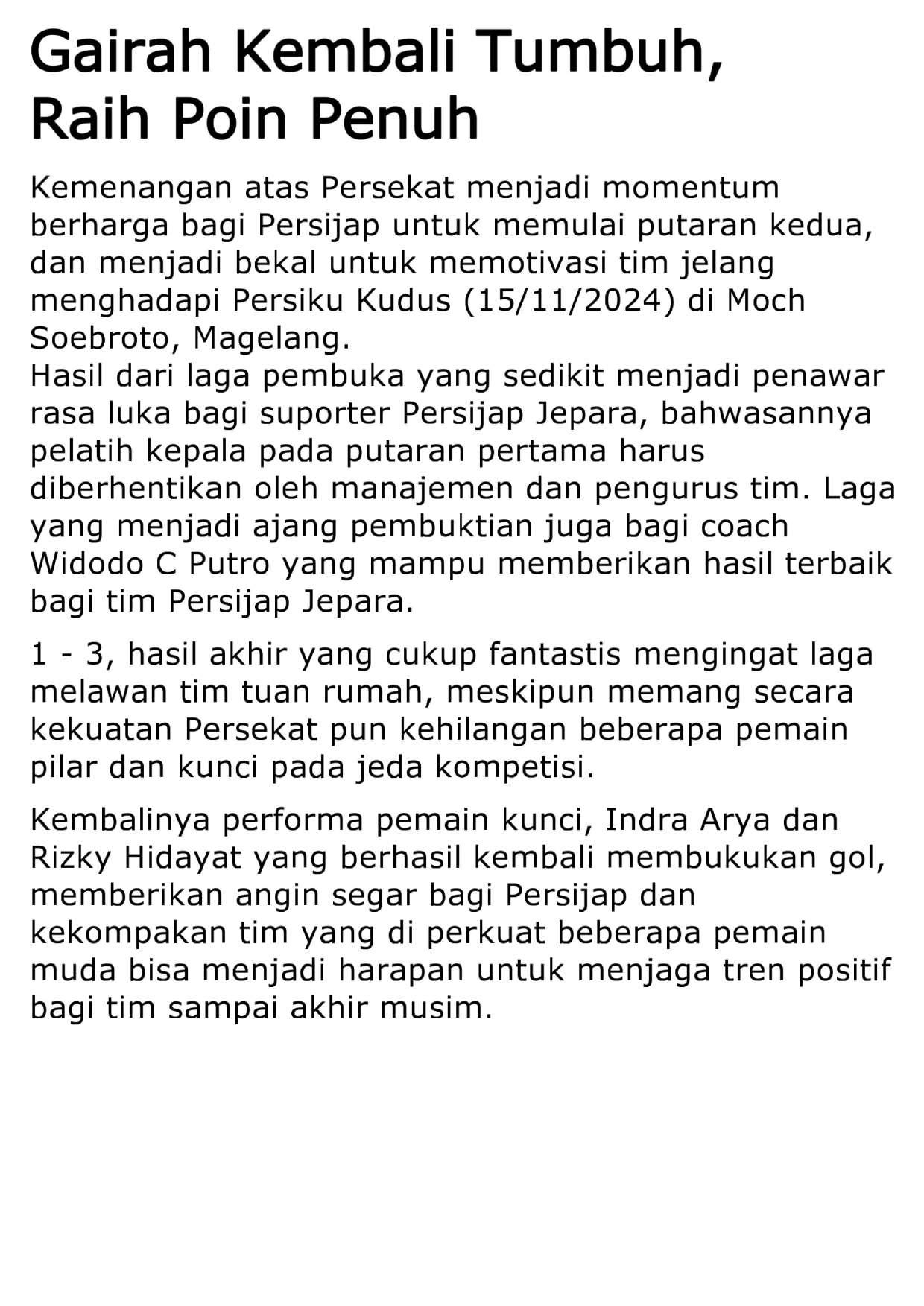 Matchday Programme Fragment 1 by : Junaidi Stand