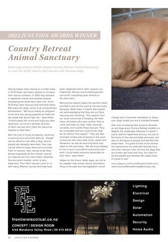 4 10 BROCK GILCHRIST J AWARDS WINNERS 12 CONTENTS 06 NEW & NOTED 08 JOIN THE REVOLUTION Spotlight 10 ON TRACK FOR SUCCESSBROCK GILCHRIST Profile 12 2023 JUNCTION AWARDS WINNER Junction Awards 14 2023 JUNCTION AWARDS Junction Awards 20 A MUA AKE – FOR THE FUTURE Local Business 22 KEEPING ACCOUNTABLE Local Business 24 MATAKANA JUNIOR ARTISANS' MARKET Local Business 25 RETREAT RESCUE TO COVER PUP Lifestyle 26 FLYING SOLO Happenings WWW.JUNCTIONMAG.CO.NZ WINNER PUBLISHED BY JUNCTION MEDIA LTD All content featured in Junction Magazine is subject to copyright in its entirety and may not be reproduced in any form without permission from the Publisher. Views expressed in Junction Magazine are not necessarily those of the Publisher. Any material supplied for publication is at the owner’s risk. All information is believed to be true by the Publisher at the time of printing. PRINTED BY GREAT DAYS LTD + WEBSTAR www.greatdays.co.nz This publication has been printed by Webstar, a Toitū enviromark diamond certified company and a winner of a Green Ribbon Award “Minimising our Waste”. www.toitu.co.nz *All details are correct at the time of print. Check event details direct with the event organiser.
