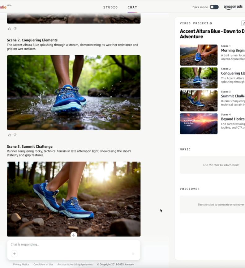 • Chat directly with Creative Studio to make images, videos, audio, & generate ideas