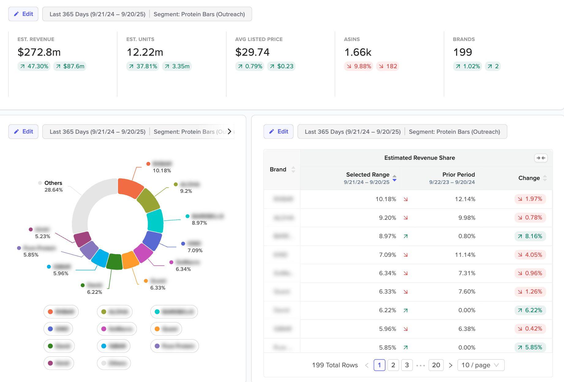 ● Another brand, hailed for satisfying sweet cravings, was the biggest market share gainer. In fall of 2023, they did $1M/month in monthly estimated sales on Amazon. Today, thatʼs over $5M.