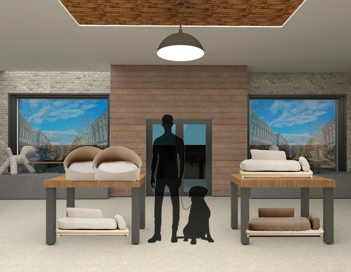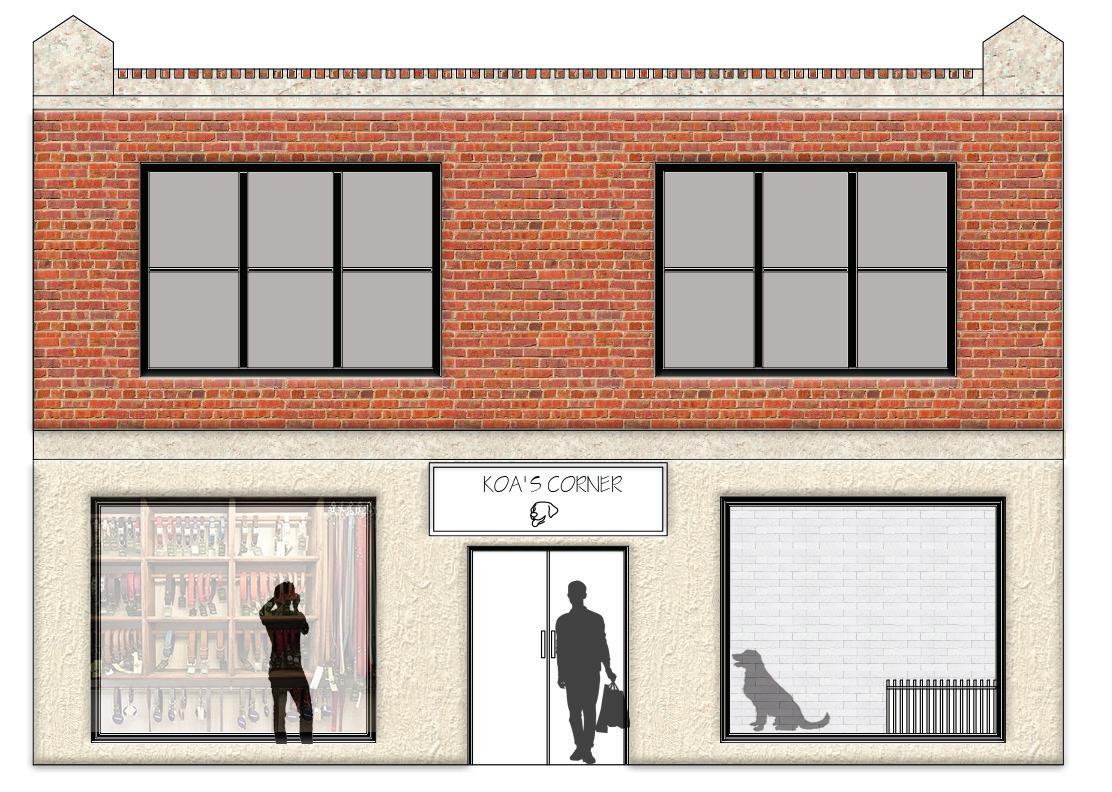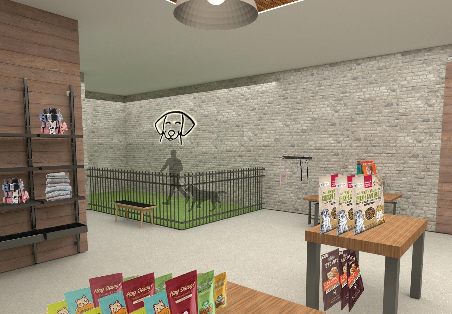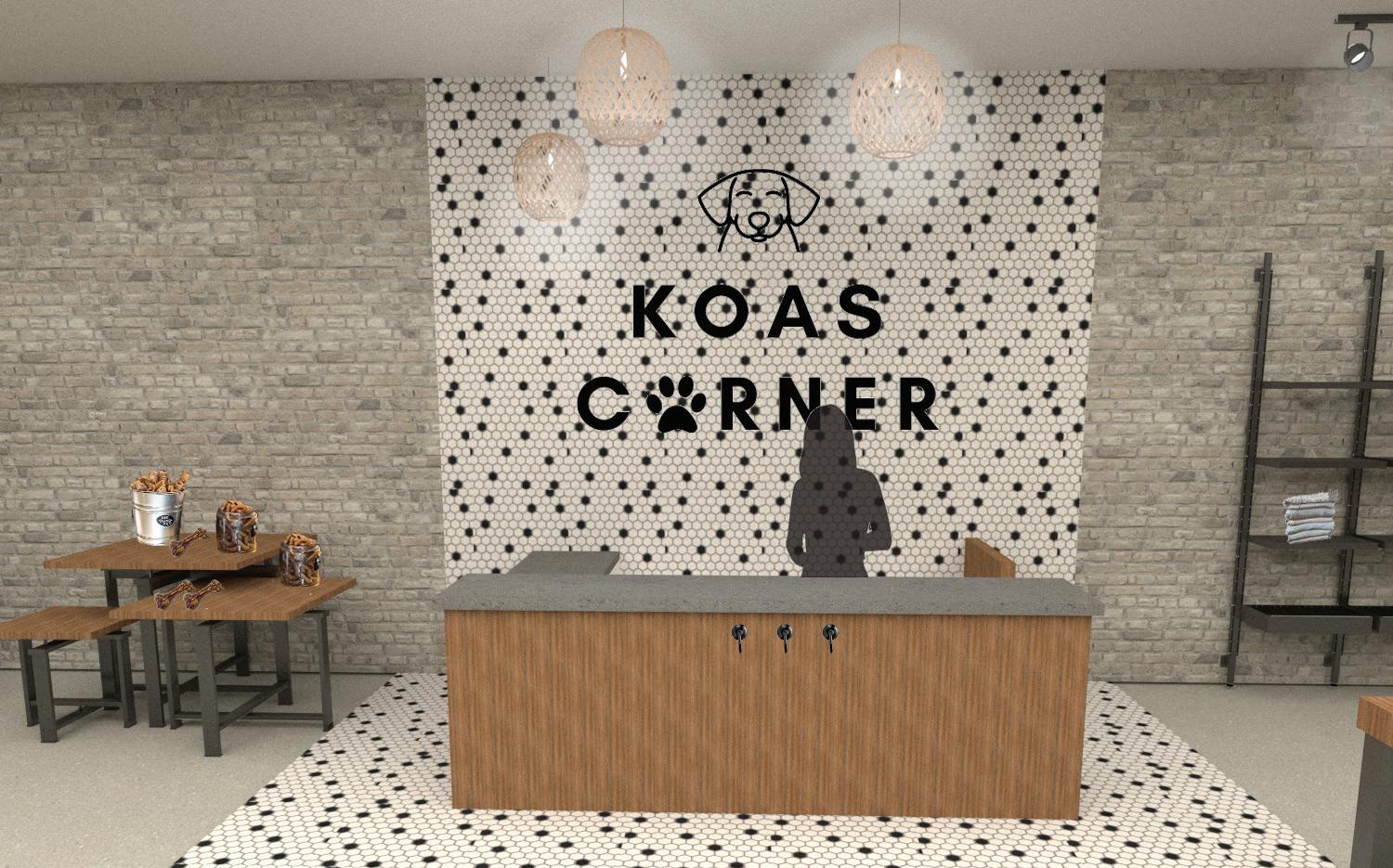Koas’ Corner is a retail space in a suburban downtown focusing on pet necessities and luxury items. This space offers ample circulation and a simplistic design.