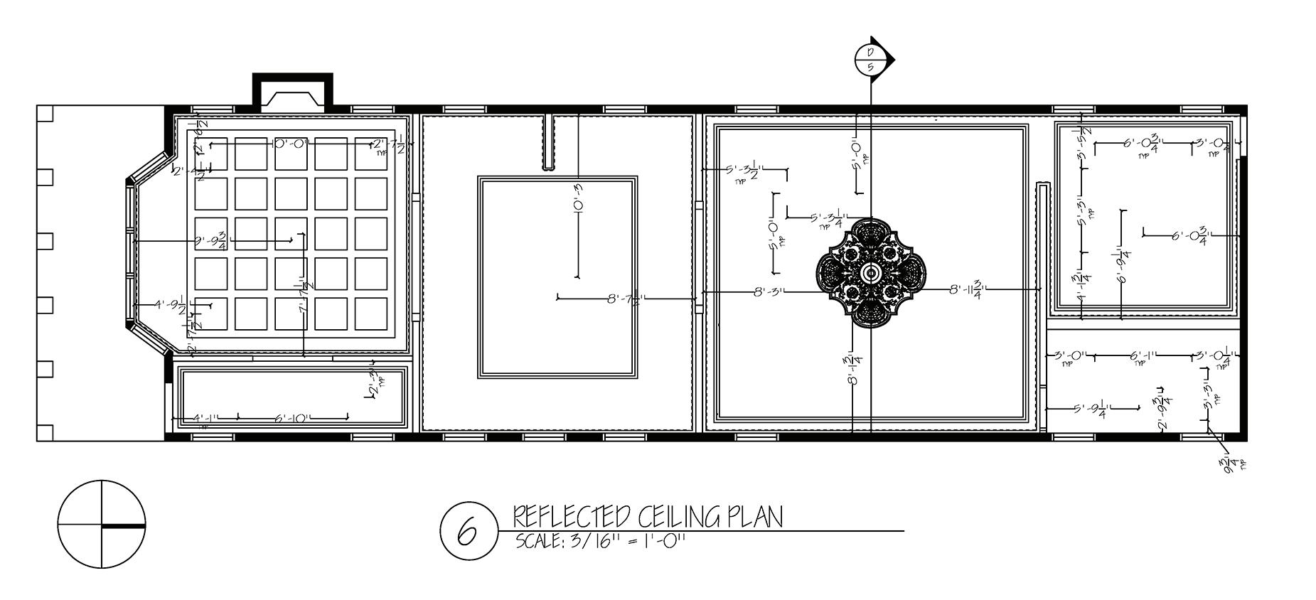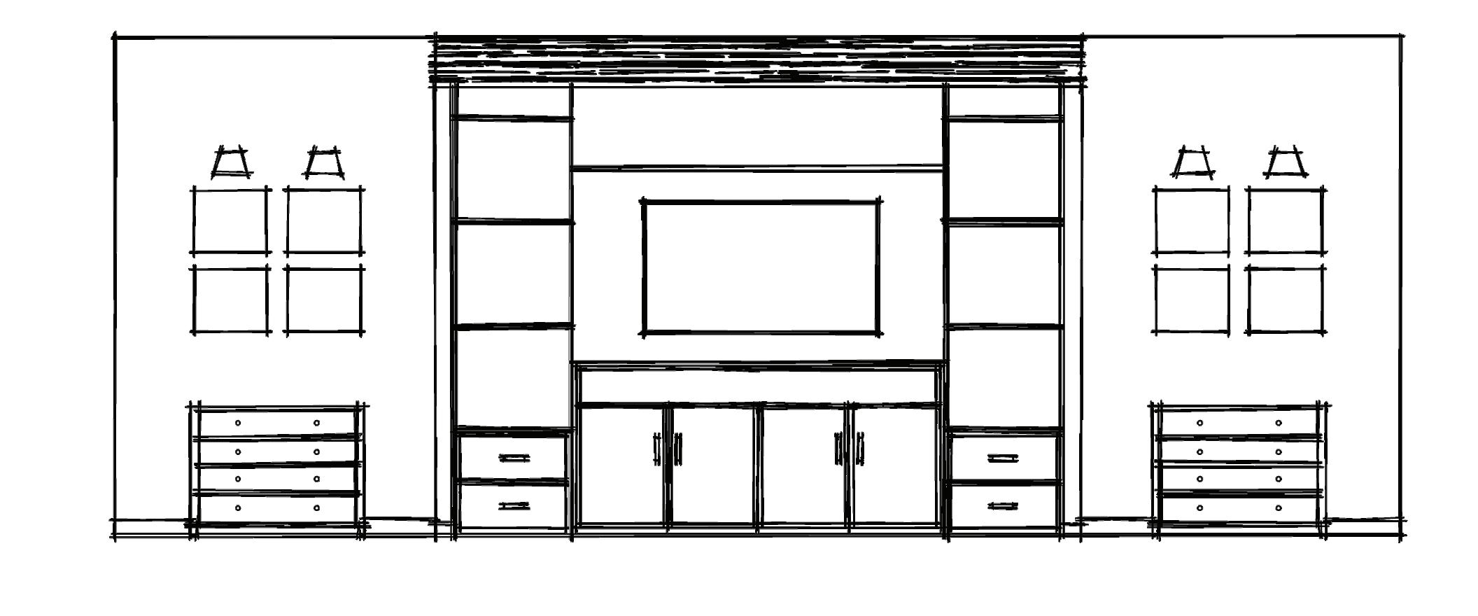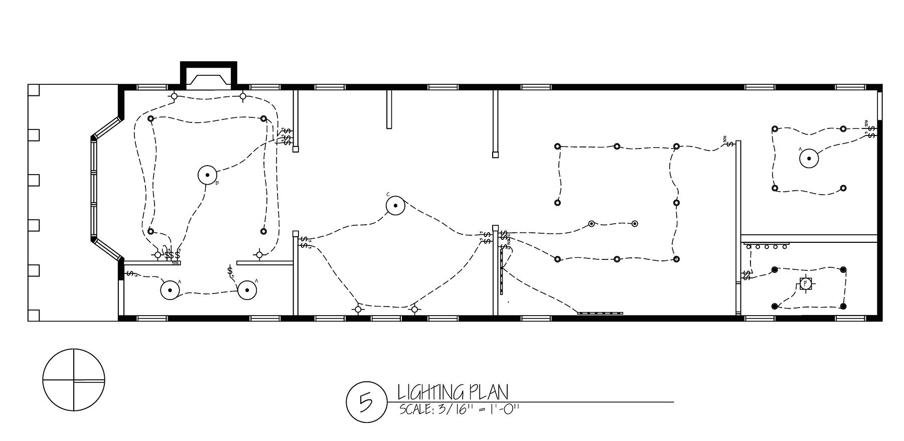 Produced in Autodesk AutoCAD and Sketchup with V-Ray. Enhanced with Adobe Photoshop Entertainment Wall Elevation Sketch Floor Plan 1/2”=1’-0” Armstrong Slat Wall- Warm Oak Circa Lighting- Prescott Chandelier Arteriors Jobe Dresser- Smoke Kravet Boarding Pass Noir- Velvet Bedding 5. Sherwin Williams- Moscow Midnight Paint 6. Kravet Devereaux Sconce- Black and Brass