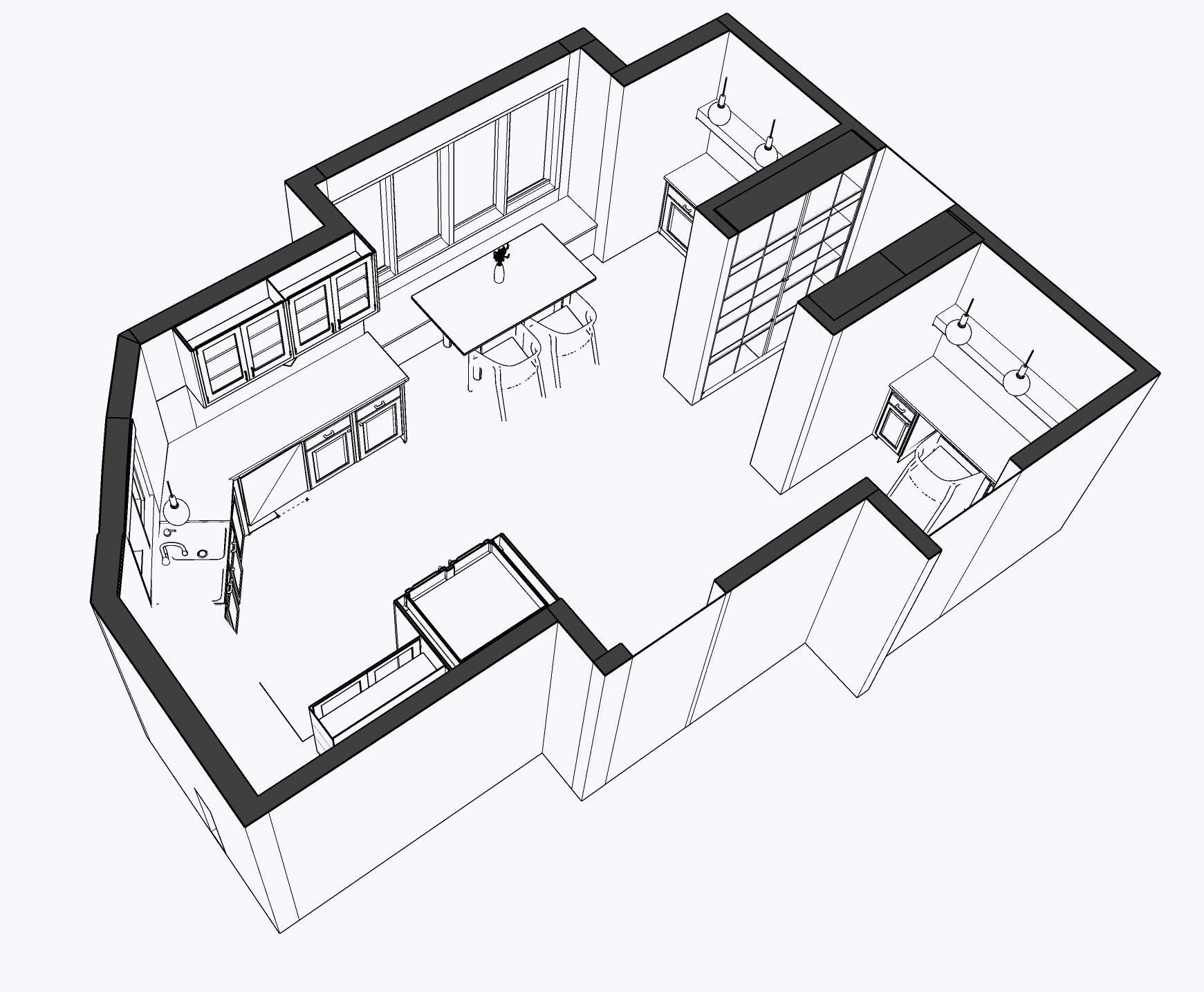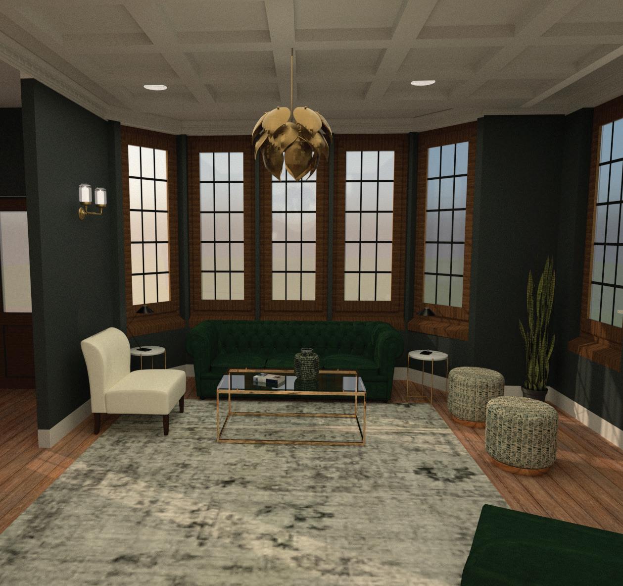 The Adkins want to update their 1888 Brownstone home. The client would like to highlight the ornate wood moldings and retain the original hardwood flooring while creating a better-functioning space.