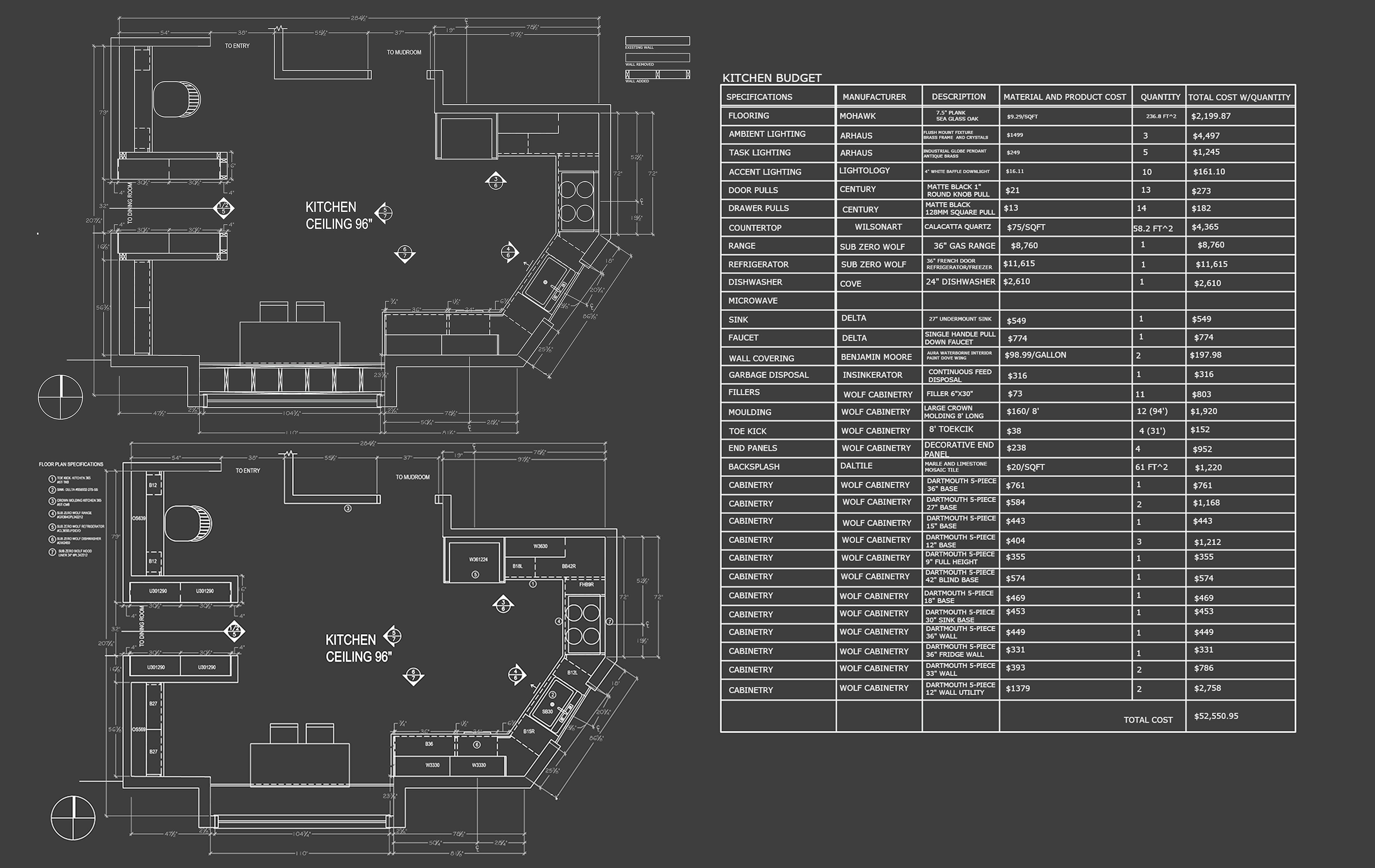 The NKBA Student Design competition required a kitchen and primary bath remodel. In order to accommodate their busy lifestyle, the Johnsons requested separate vanities and a high-end custom design.