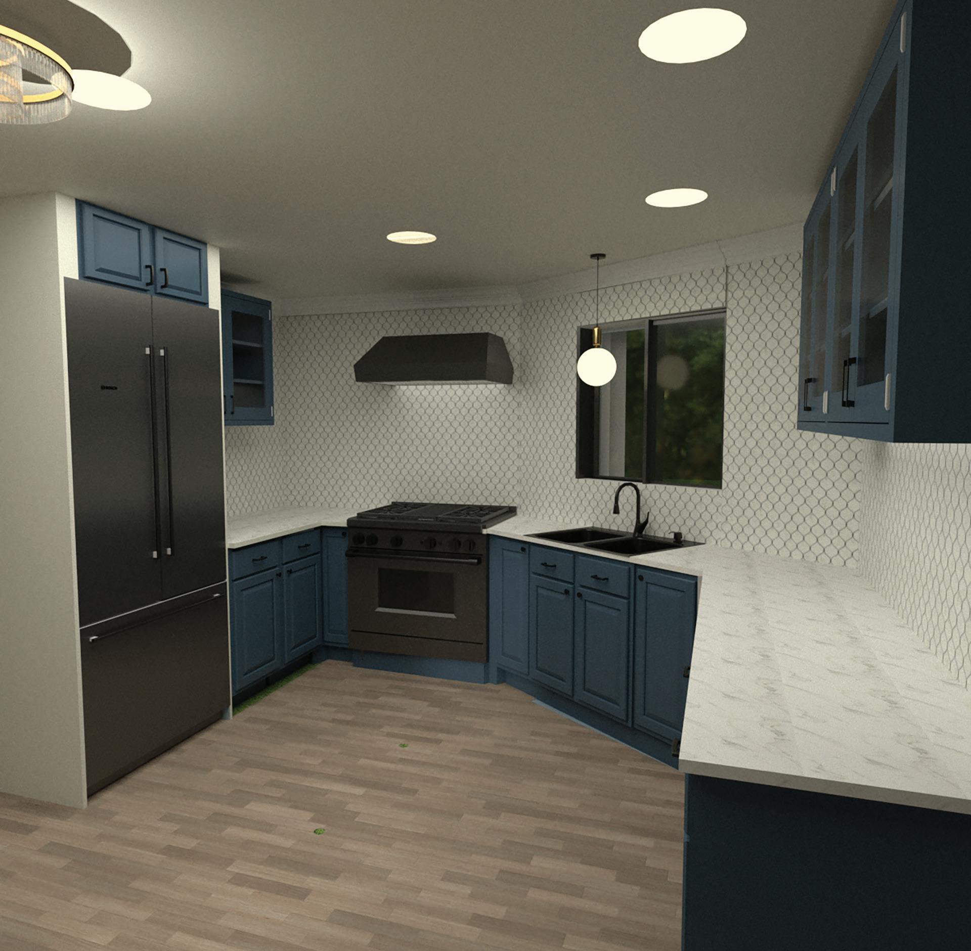 The NKBA Student Design competition required a kitchen and primary bath remodel. The Johnsons wanted to display art and maintain a transitional style. They also wanted an area for their kids to be able to do their homework and a place for quick meals.