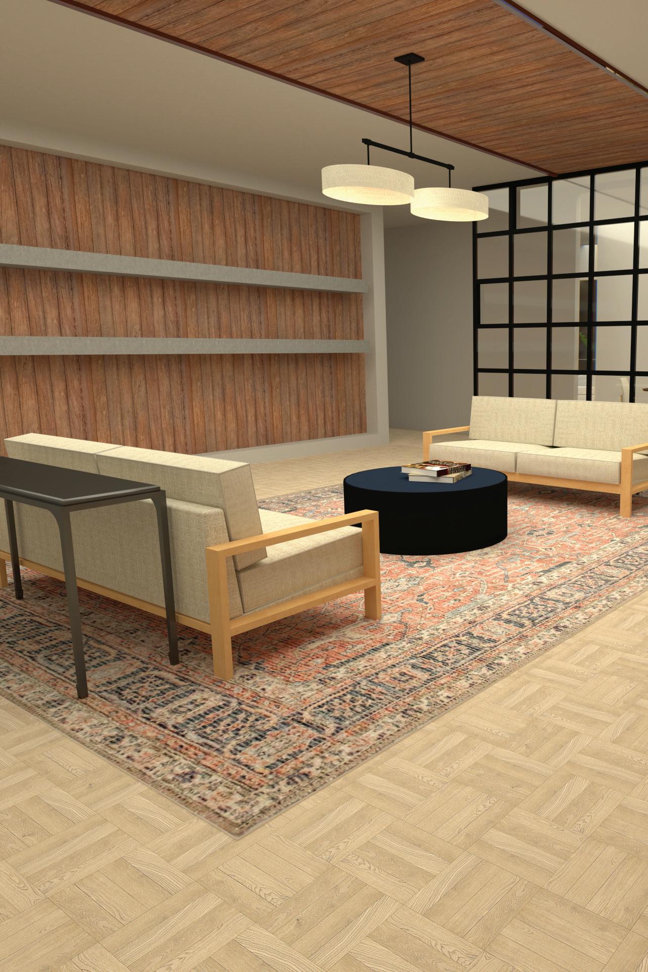 The Stewarts wanted to create space within space for their primary bedroom, with a contemporary design style. They wanted to add a living area adjacent to their sleeping area and to create a cohesive and multi-purpose space.