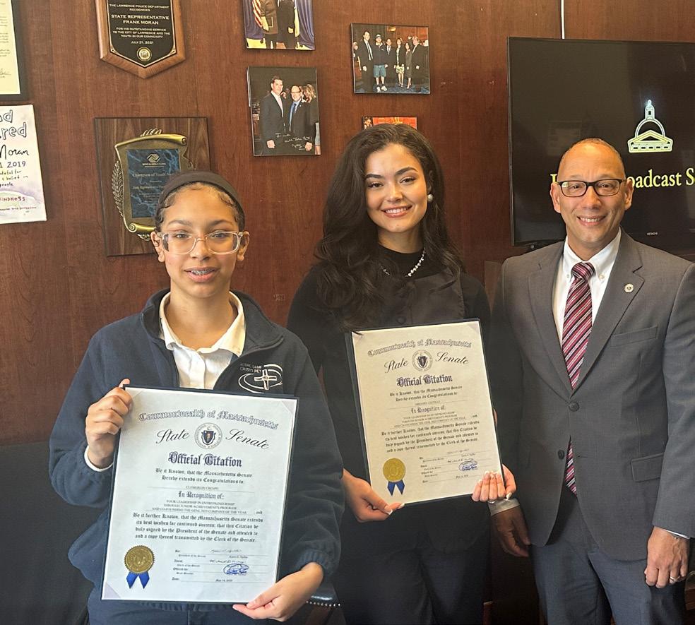 Over the 21-week program, students participated in our events such as the design thinking workshop, seed funding competition, entrepreneurial expo, and the annual JA of Greater Boston regional pitch competition. The student-run company, The Geni (hosted by Reading Cooperative Bank in Lawrence), won first place and the title JA of Greater Boston Company of the Year. Created by first-generation high school students from Lawrence, The Geni sold travel-sized magnetic accessories to keep bags off dirty floors and used all profits to fund a scholarship for firstgeneration students in their community. This is the first time a team from Lawrence has won our regional pitch competition. The students were even invited to and recognized at the State House by elected officials from the hometown of Lawrence.