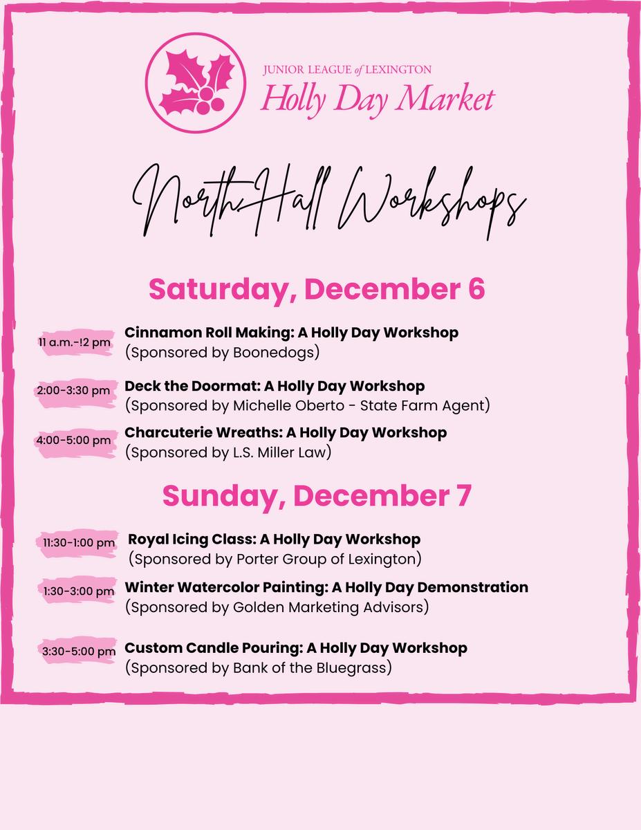 Finally,toourshoppers:theHollyDayMarketthrivesbecauseofyou.Yoursupport,throughattendance,workshopparticipation, silentauctionbidding,andengagementwithourmerchants,fuelstheJuniorLeagueofLexington’smissionandstrengthensour abilitytomakealastingdifferenceinCentralKentuckyThankyouforshowingup,givingback,andbelievinginthepowerof community.