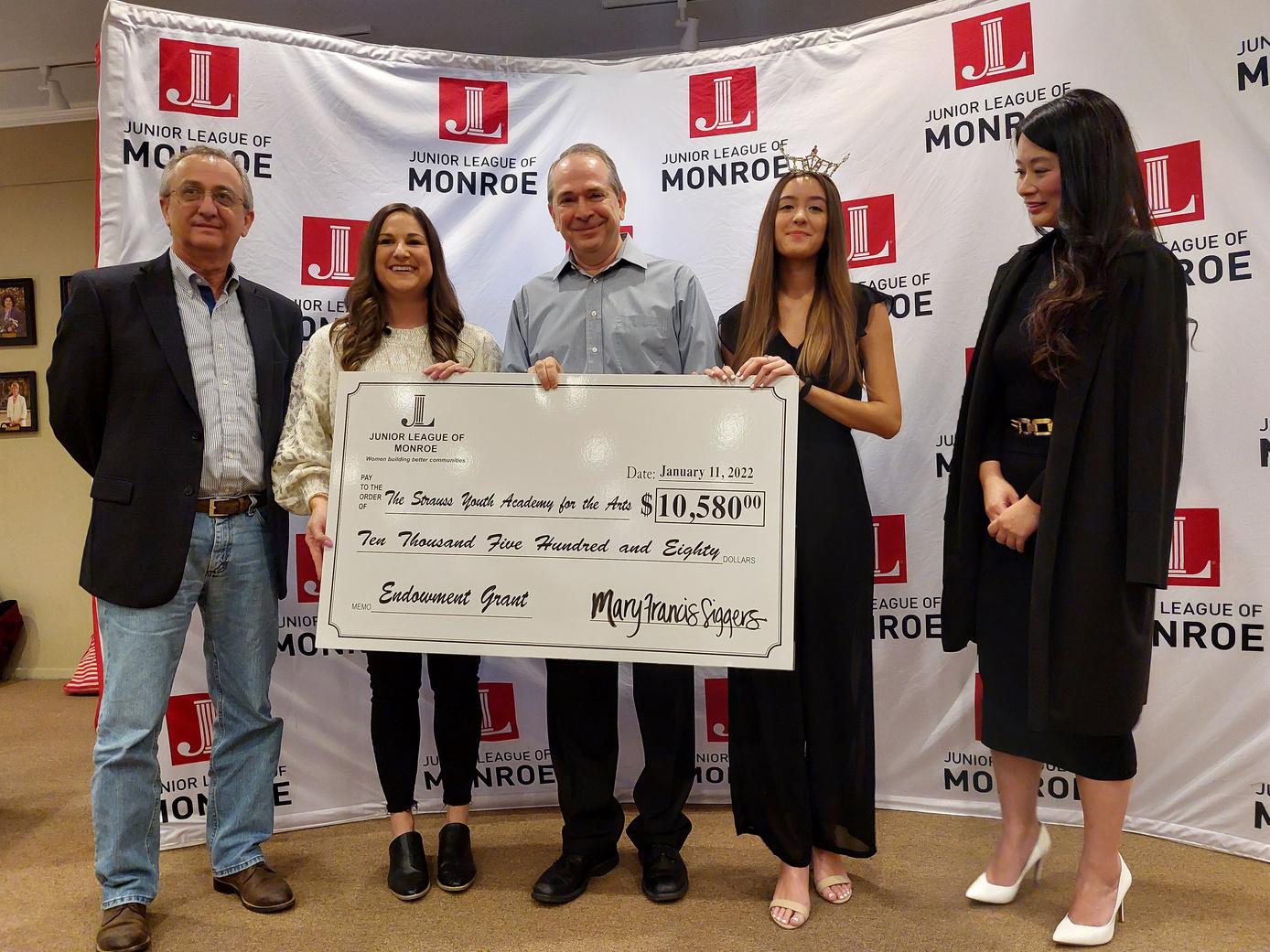 Strauss Youth Academy of the SArts trauss Youth Academy of the Arts This year the entire endowment grant of $10,580 was awarded to the Strauss Youth Academy of the Arts. At our January general meeting we had a ceremony and Scott Bell from the Strauss came to the league and received the check.