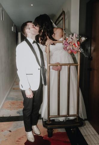 DanielleSanchez & WillDwyer married August12FellowLibraryPuppeteers,Sasha Segundo&RachaelRussell,wereDanielle’s dressbustleteam!Borrowingjewelryfrom herfamily’sstore,DiamondsDirect,Danielle wasaverywell-blingedbridethroughallof hercelebrations!(6)