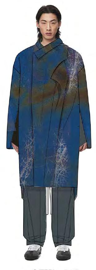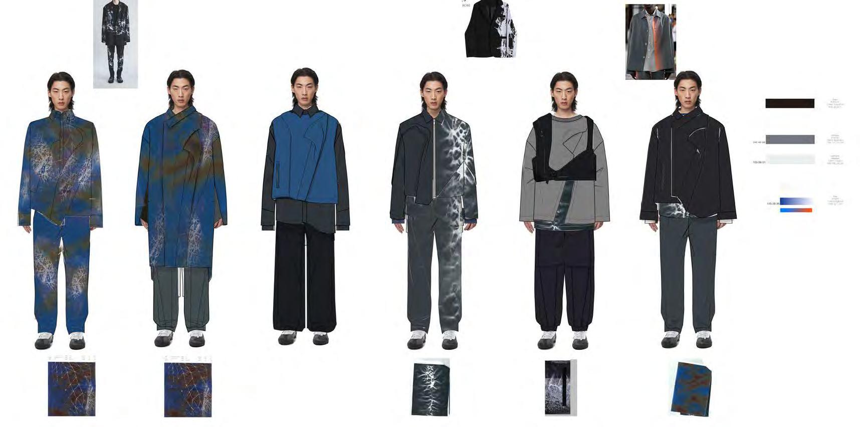 迹、 未来探寻 ” 小主题 , 以服饰语言延伸到自身 、 社会 、 宇宙 , 呈现出多维 度的设计思考。