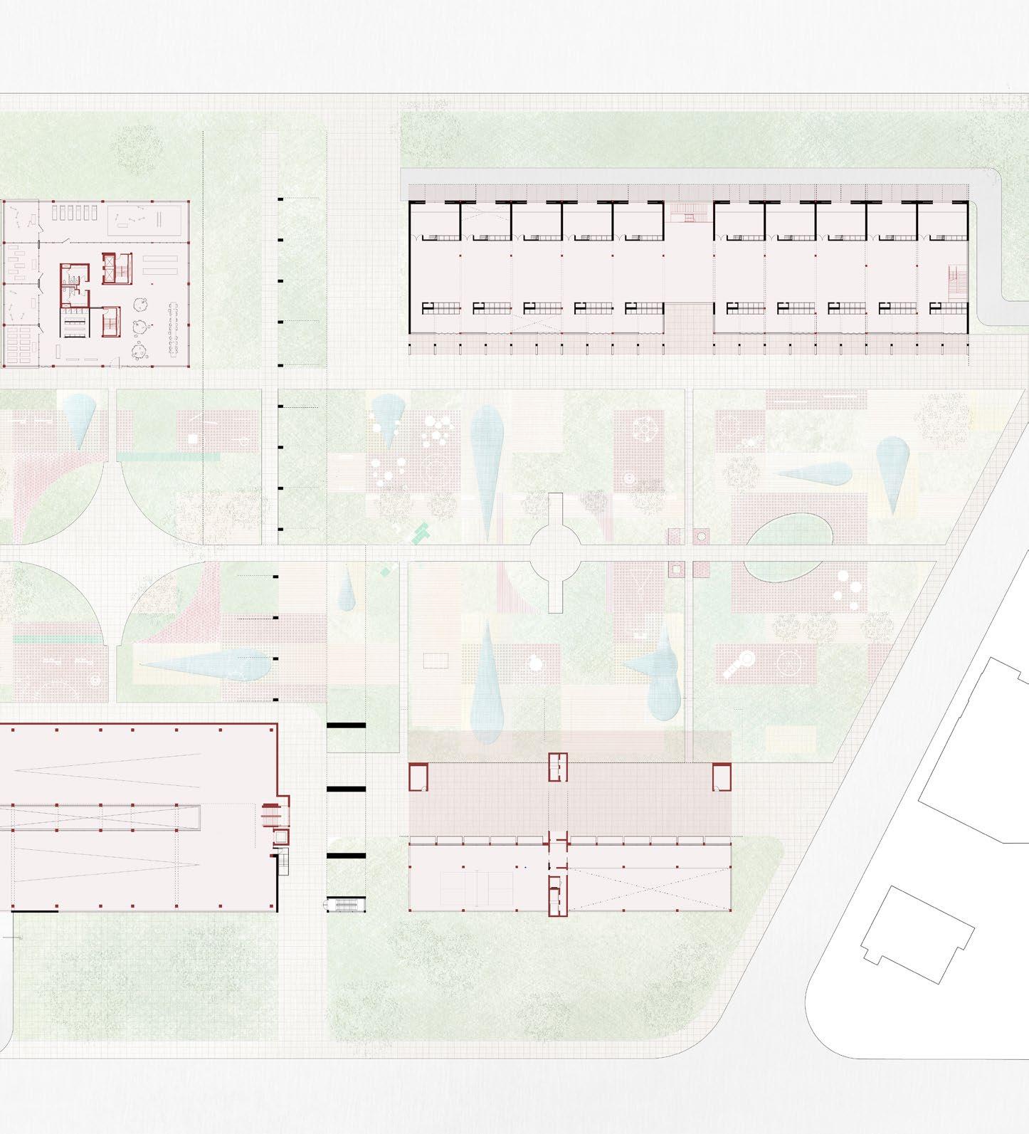 space of the park, public amentities, workshop and commercial corridor takes on the life of the neighborhood