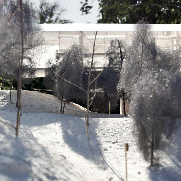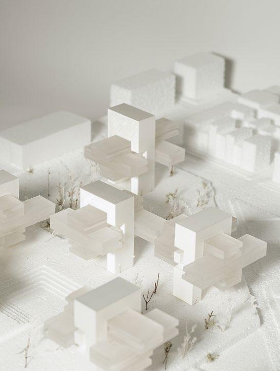 This post-industrial landscape exists in limbo, neither fully industrial nor completely transitioned to the service economy that has taken root elsewhere. The design proposal seeks to bridge this divide, transforming the site into an architectural micro-village nestled within the forest. Drawing inspiration from both the natural and built environment, the scheme creates a deliberate transition between the urban fabric and the adjacent arboretum. Like the Talking Heads lyrics suggest, where industry once dominated, nature begins to reclaim its space—not through abandonment, but through intentional design that honors both the site’s heritage and its future potential.