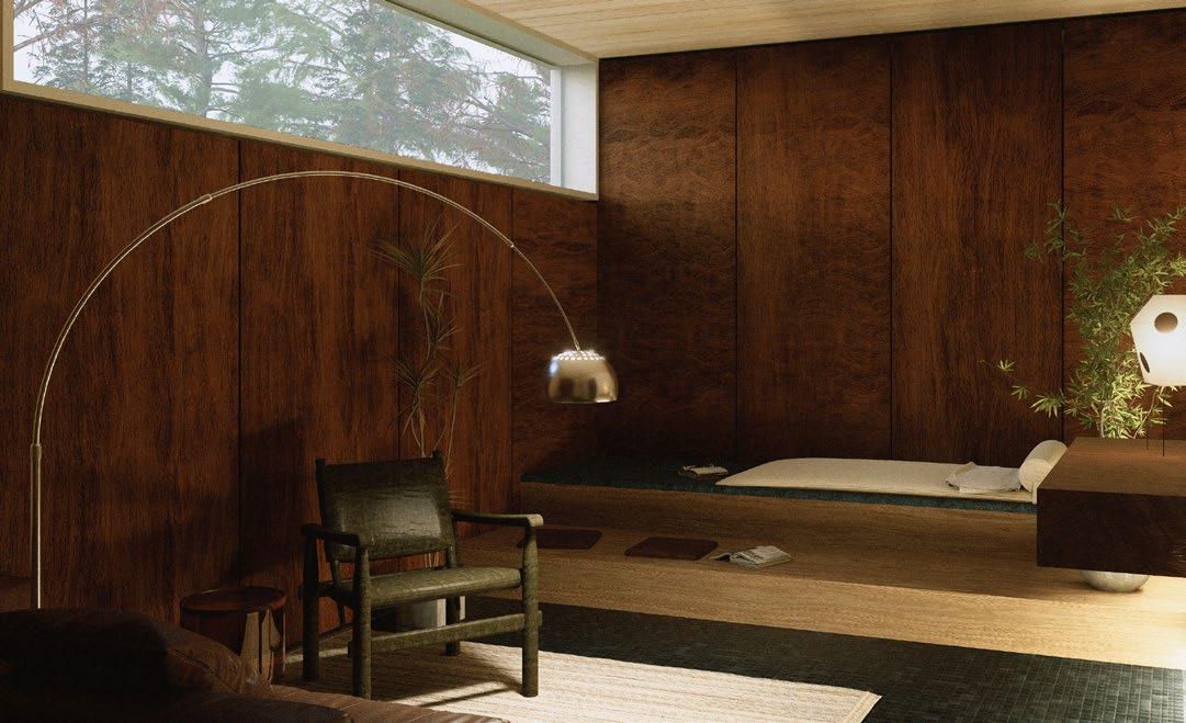 Each five-foot level change creates a delicate dance between privacy and openness - what serves as a door at one level becomes a window at another, offering glimpses between spaces while preserving their intimacy. As the rooms step down towards nature, they stretch longer, reaching towards the forest. Though the roof height remains constant, the spaces beneath evolve: light filters differently, sounds carry uniquely, and our senses tune to subtler frequencies. It’s a journey where architecture becomes increasingly quiet, letting nature’s voice grow stronger.