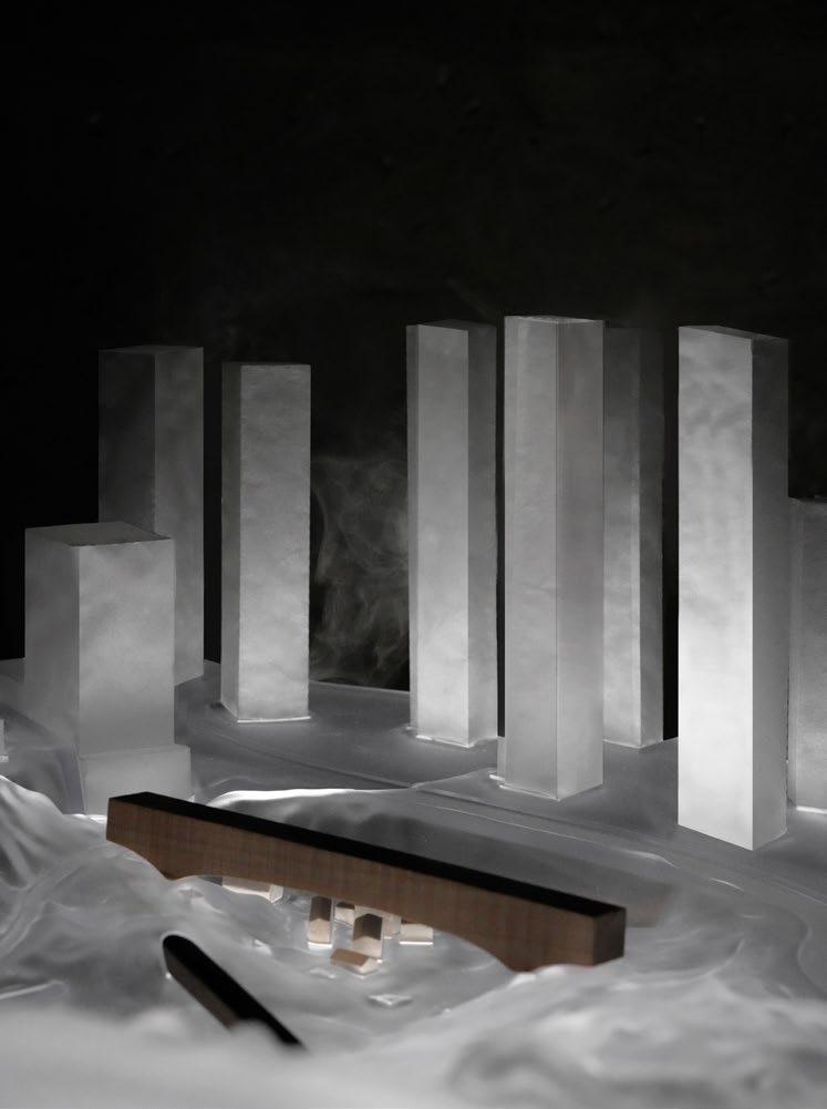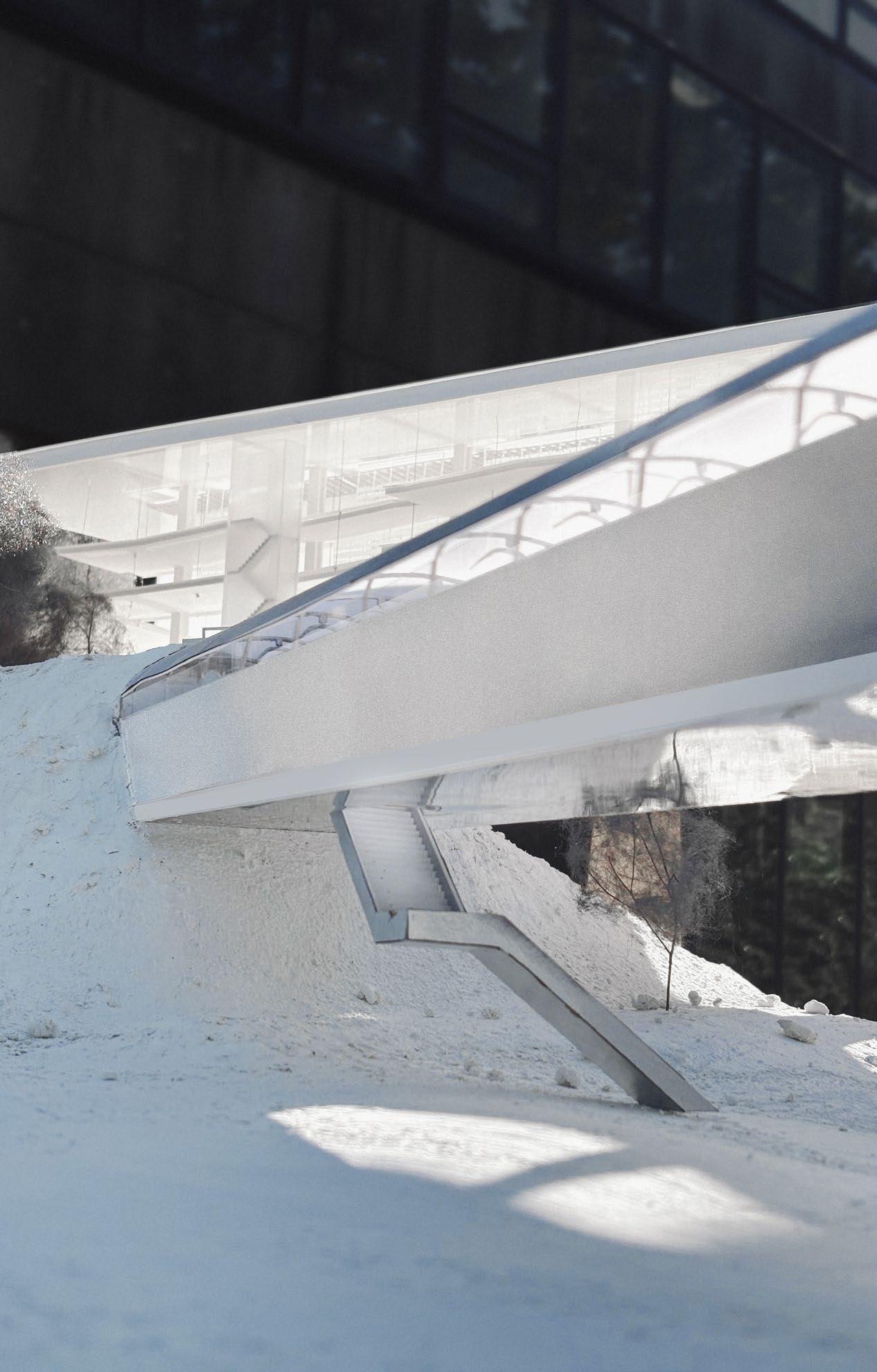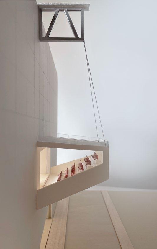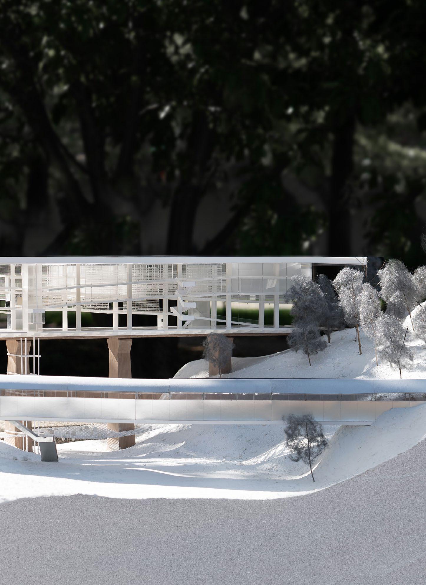 In cities where stable ground is scarce, these elevated thresholds transform from disconnected fragments into new civic terrain. By reconceiving infrastructure not as a utilitarian conduit but as a cultural repository, this intervention explores the essential tension between anchoring and ascending—where the gravitational anchoring of knowledge creates the necessary counterbalance for the ethereal quality of light and space flowing through the void below.