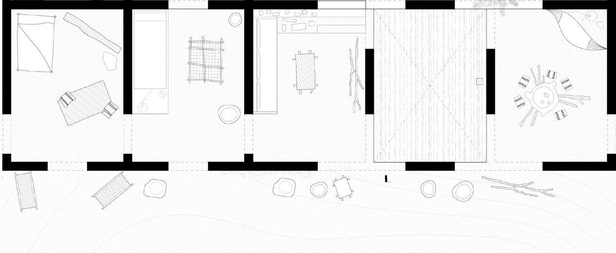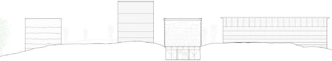A field condition is a formal or spatial matrix capable of unifying diverse elements while respecting their identity, defined by local connections and key concepts of interval, repetition, and seriality. The entrance of the building provides a dynamic and engaging space that reflects the natural context with a mix of soil, stones, and wood. The use of locally sourced materials highlights sustainable design practices and reinforces the connection between the built environment and the landscape.