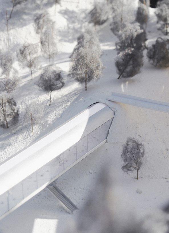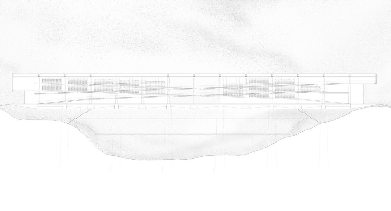Architecture exists in the measured balance between nothing and presence -- where nothingness manifests as the space between defined elements, the space where humans stand and where light, air, and volume are held. In context of extreme topography, a segment of elevated railway— once part of a continuous infrastructure network that negotiated elevation differences—now stands isolated and obsolete. This fragment hovers in a liminal state between earth and sky, between past function and future potential, between absence and magnetic presence.