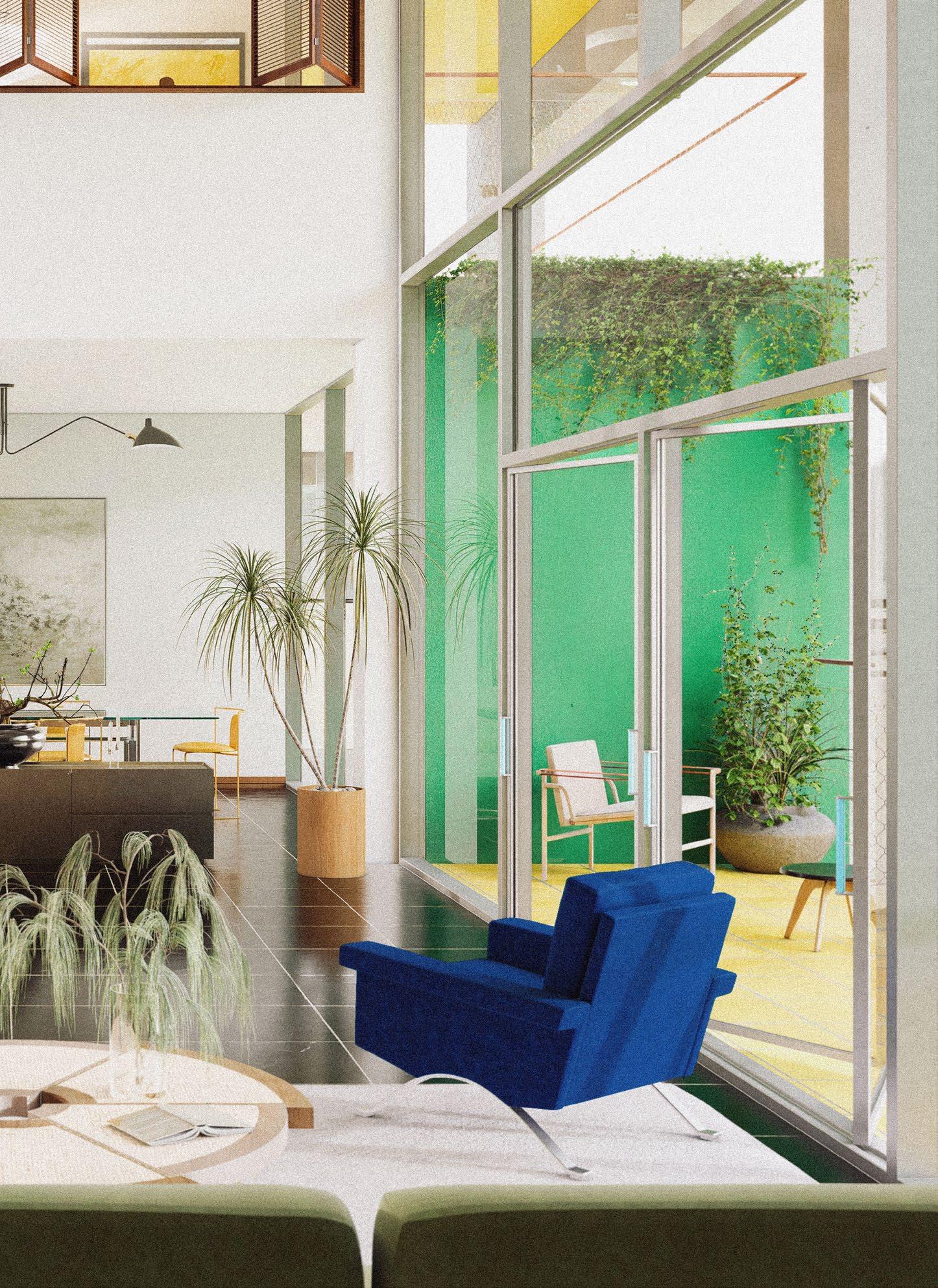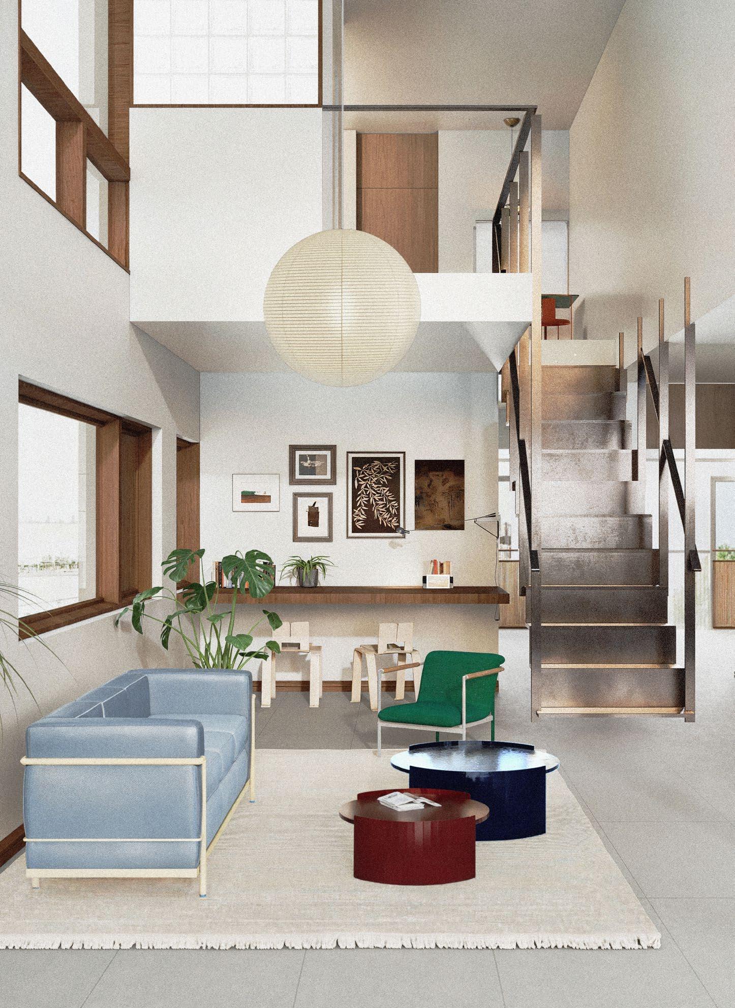 The residential unit captures villa-like qualities through a thoughtful progression of spaces: from a luminous entry vestibule with kitchen and service core to dramatic double-height living areas for both leisure and shared work. Natural light, cross-ventilation, and flexible partitions create an autonomous living experience that elevates typical apartment dwelling into a more fluid, collaborative environment.