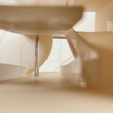 The archive program reinforces this gesture of levitation. Weighty collections anchor themselves strategically within the thickness of the structure, while the horizontality sacred to the context manifests through a series of gentle ramps that interweave spaces without division. These ramping surfaces negotiate between levels while preserving the openness of the void, creating a fluid experience where visitors navigate between density and openness, between weight and weightlessness.