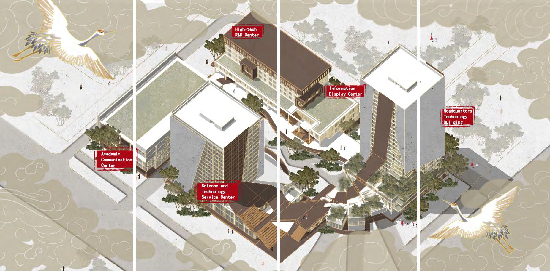 The project intends to create a "paradise" for today's researchers and innovators, a place where they can calmly study and research, using the connection of stairs and ramps to allow people to roam around the building and experience the atmosphere of the park. At the same time, the design of the central green space scene and the green roof as the background, to provide people in the visual comfort and enjoyment. Considering the energy consumption problem of the Science Park, a series of energy-saving designs were incorporated into the design with the concept of "green" to create a beautiful park and reduce energy consumption at the same time.
