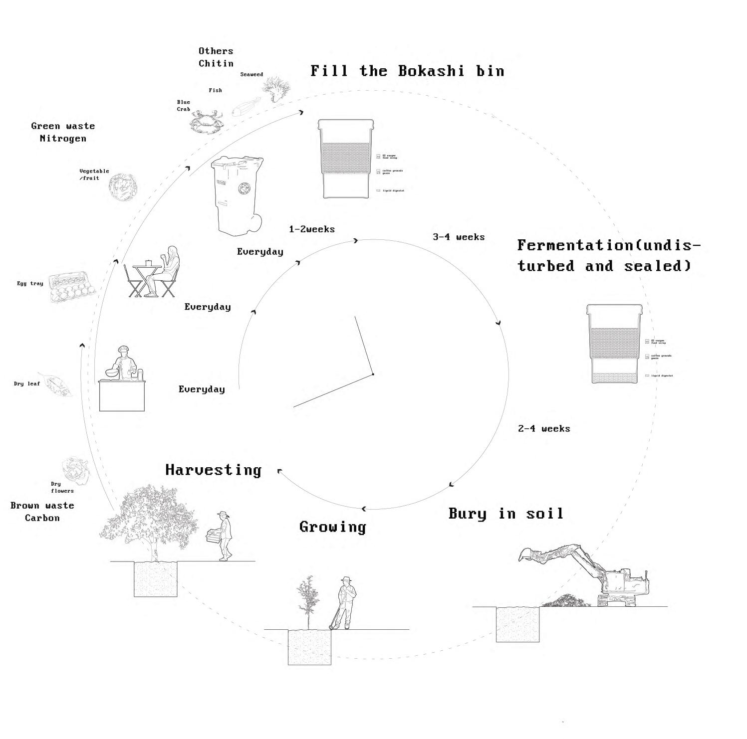This design reimagines food scrap transportation by shifting from long-distance, truck-based municipal composting to a hyperlocal composting system supported by bike collection. The environmental benefits are substantial: