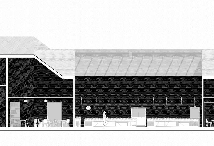 The focus of this project is the interior core. This core runs through the length of the building and serves as the circulation, utility, structure, and the programmatic catalyst.