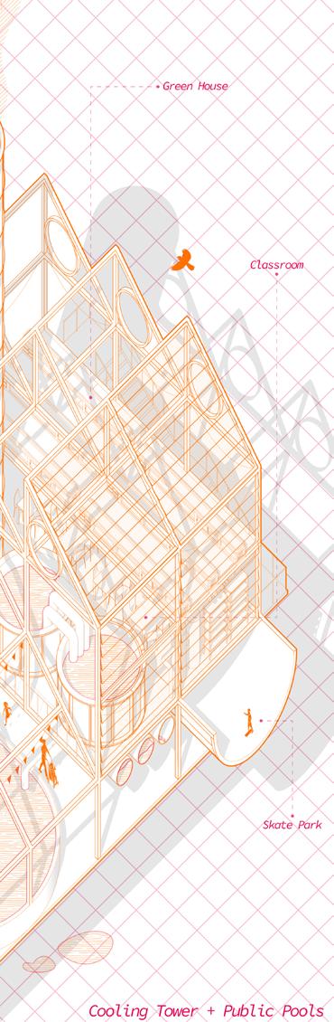 Collective Central is a train station proposal on the Texas A&M campus. Along being a hub for the railroad network, the station is also a geothermal power plant. This combination of rail resources, water, and agriculture invites recreational and education programs.