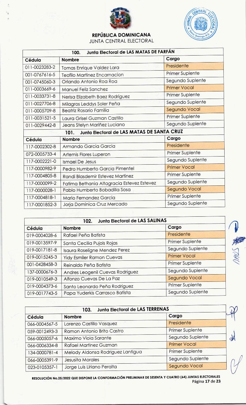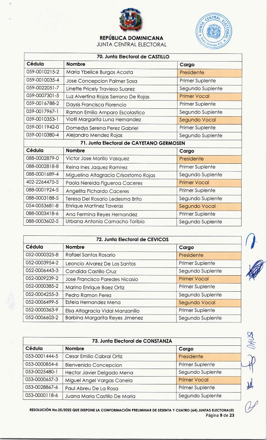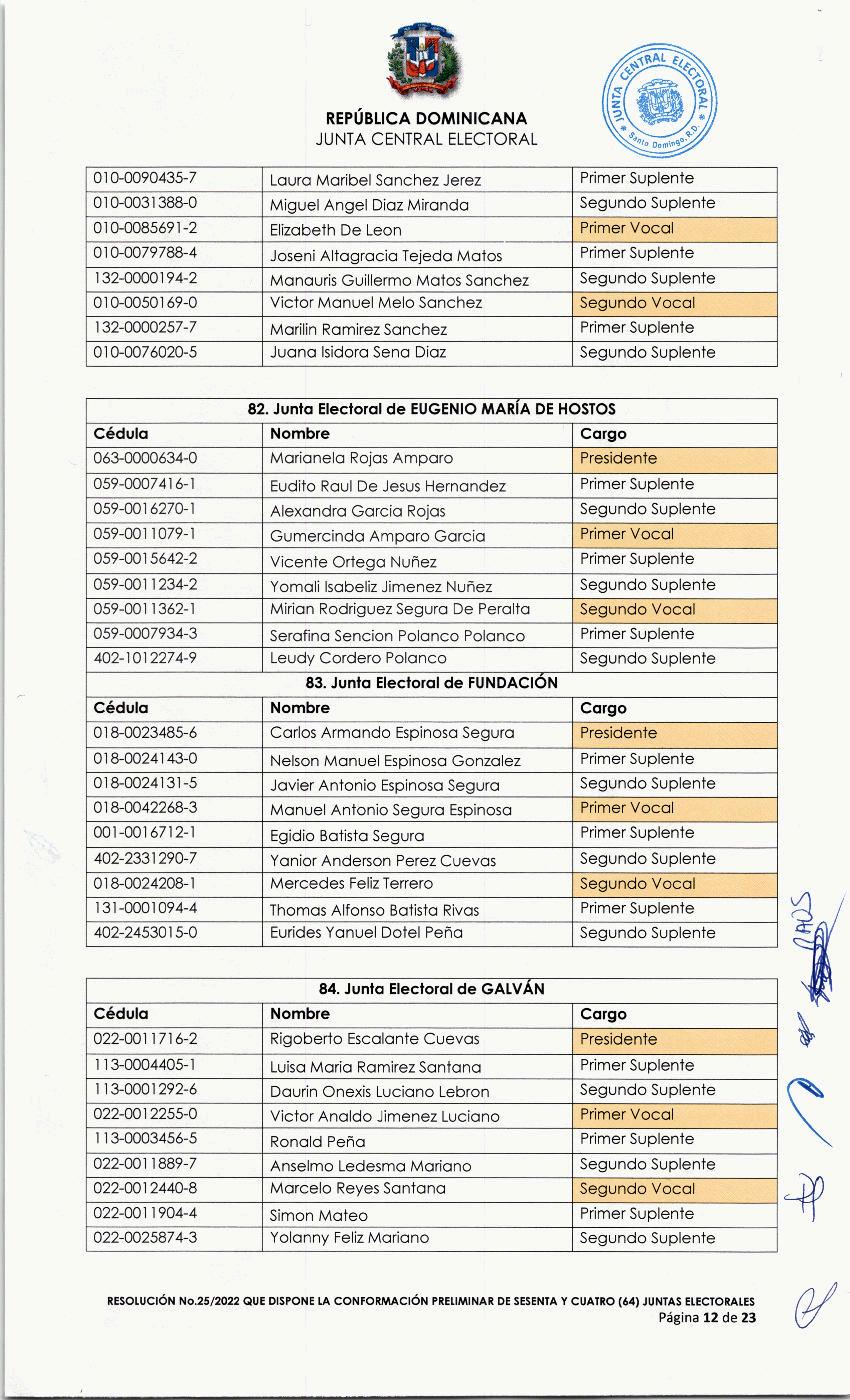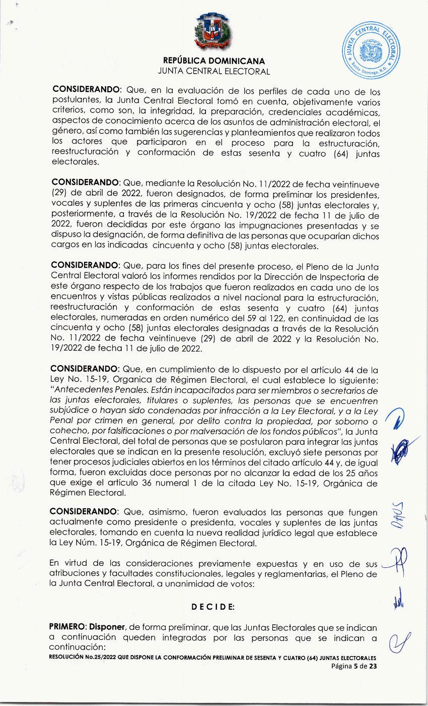 025-2022 Resolución que dispone la conformación preliminar de sesenta y cuatro (64) juntas electoral