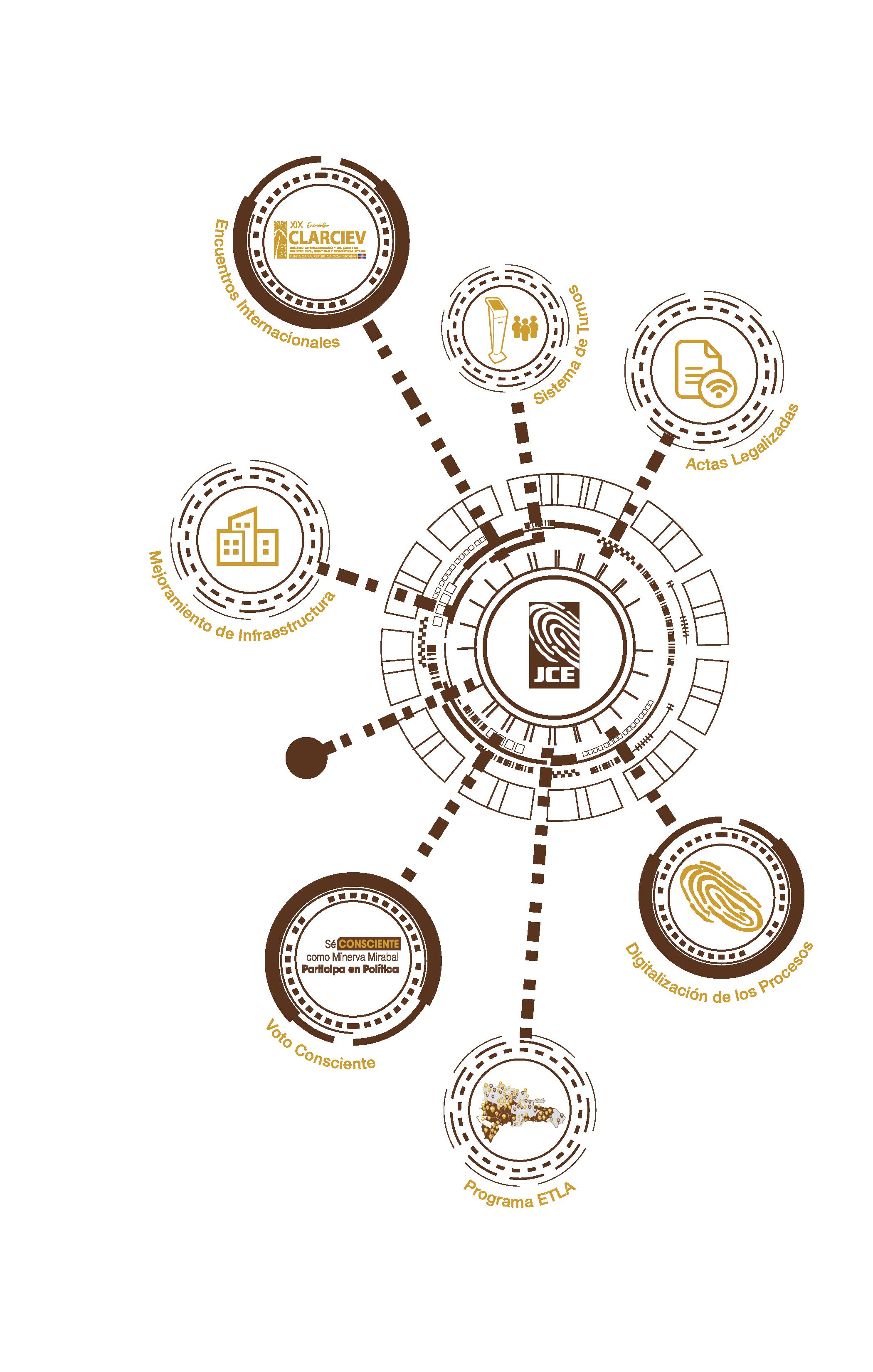 Es así como la Junta Central Electoral (JCE), partiendo de estas premisas enarboladas, continúa articulando con efectividad con los actores de la sociedad, haciendo una labor productiva, en equipo y coordinada, de adhesión a los principios en los que se sustentó el nacimiento de la República Dominicana en 1844, cuando jóvenes imbuidos por los ideales de libertad orientaron a nuestro pueblo a construir la identidad propia de nuestra nación, convocando a través de la Sociedad «La Trinitaria» a unirse todos/ as los/as dominicanos/as de buena voluntad, y fundar una patria cimentada en la participación activa de la sociedad en su conjunto.