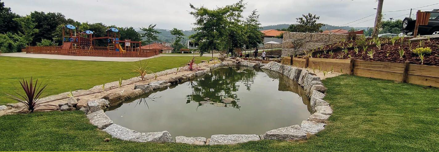 Construído com materiais naturais e amigos do ambiente, privilegiando empresas locais, o parque de lazer afirma-se como um espaço verde, acolhedor, de convívio para famílias e amigos.