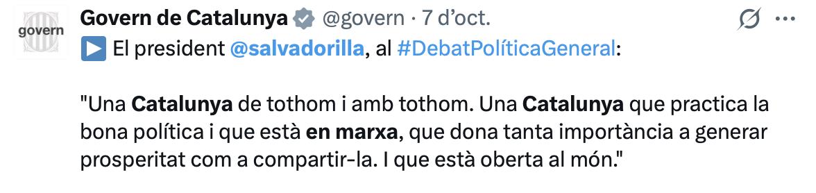 En paral·lel, Junts ha exigit al PSC un punt d’inflexió perquè s’alineï amb l’Acord de Brussel·les durant les votacions del debat per disposar d’una eina per avançar nacionalment, socialment i econòmicament. Per això, Batet ha interpel·lat el president Illa a posicionar-se: “O hi ha normalitat o hi ha conflicte polític pendent de resoldre. Les