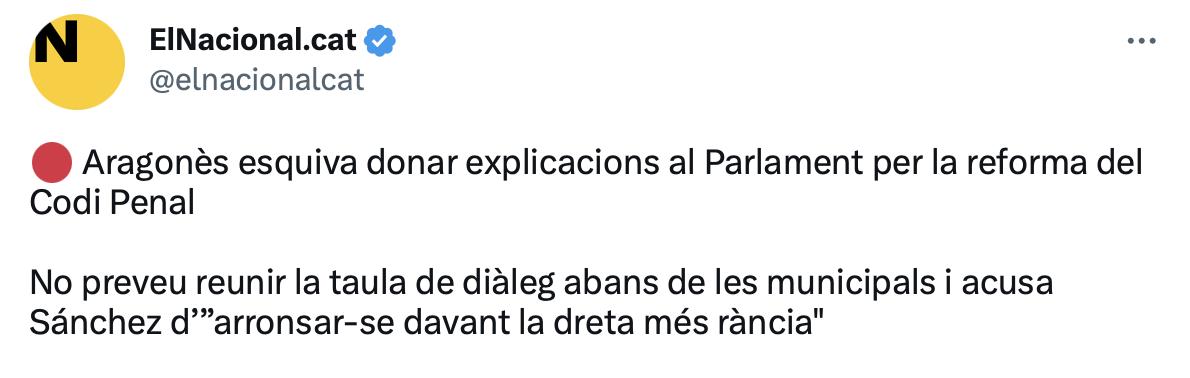 Aragonès incompleix els seus compromisos i no compareixerà al Parlament per explicar les negociacions amb l'EstatCarles Puigdemont (@KRLS) President Laura Borràs (@LauraBorras) Presidenta