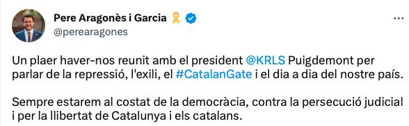 La presidenta Laura Borràs i el secretari general Jordi Turull han retret al president Pere Aragonès que no hagi defensat el president Carles Puigdemont davant les mentides de l’exministre de l’Interior, Ignacio Zoido. En la mateixa reunió que van participar Aragonès i Zoido, l’exministre justificava l’ús de Pegasus per espiar polítics independentistes i va posar especial focus en el president Carles Puigdemont, en el fet que, segons l’exministre, hi van haver “investigacions judicials i policials” per indagar en les suposades reunions que havia tingut Puigdemont amb emissaris de Putin.