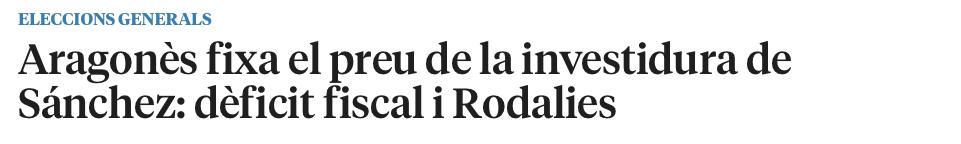 “Diada intensa, amb ofrena floral amb @JuntsXCat al matí, Òmnium Cultural al migdia, manifestació d’ @assemblea a la tarda amb la força de la gent. No hem de facilitar cap investidura espanyola: la investidura espanyola ha de permetre resoldre el conflicte polític amb Catalunya.”