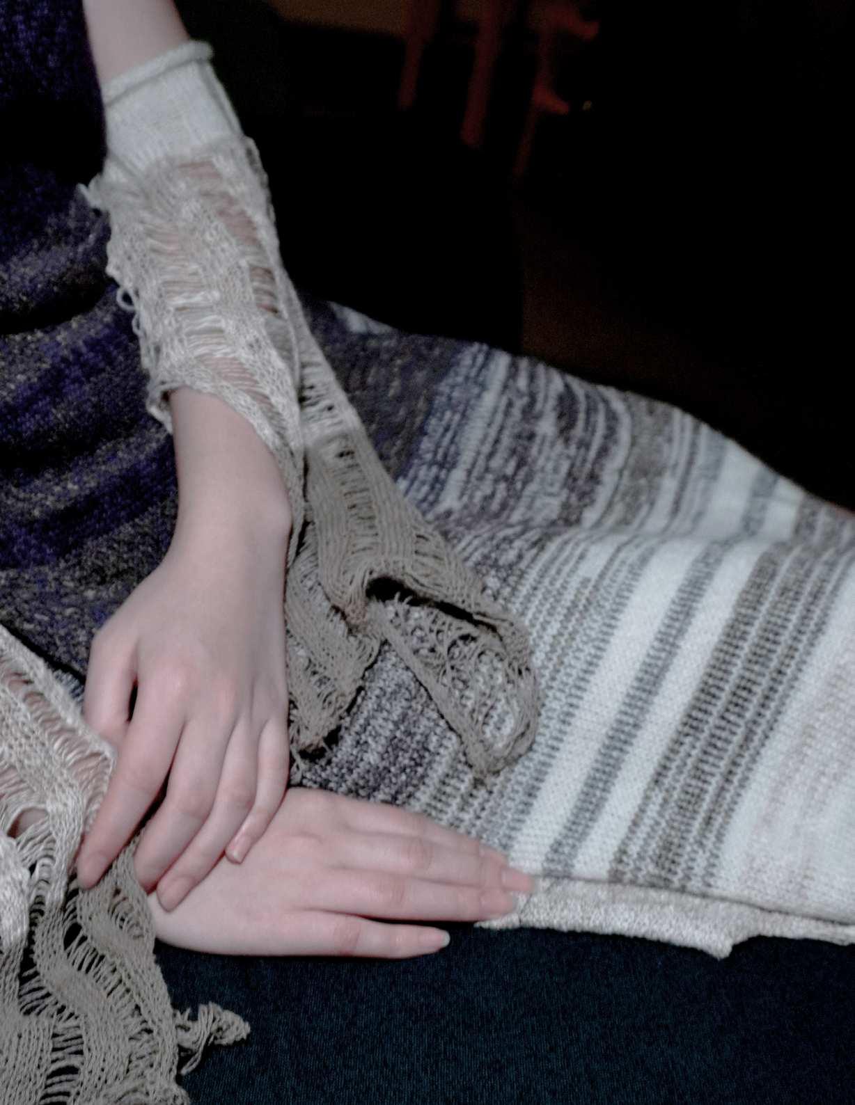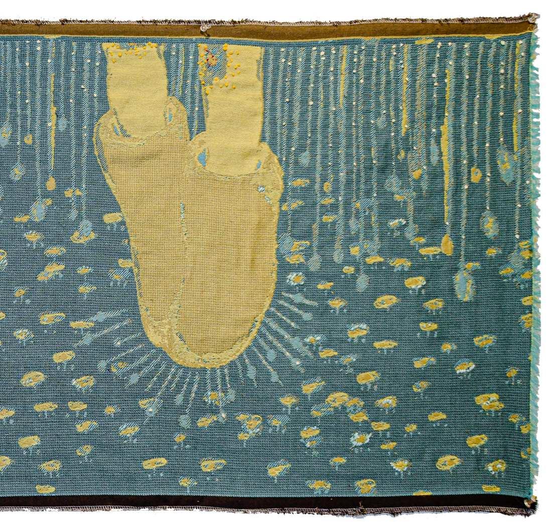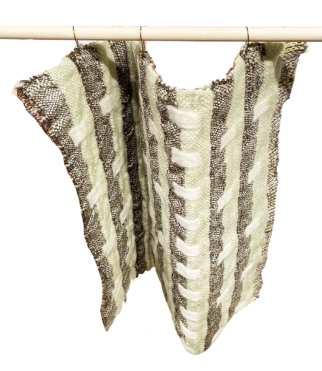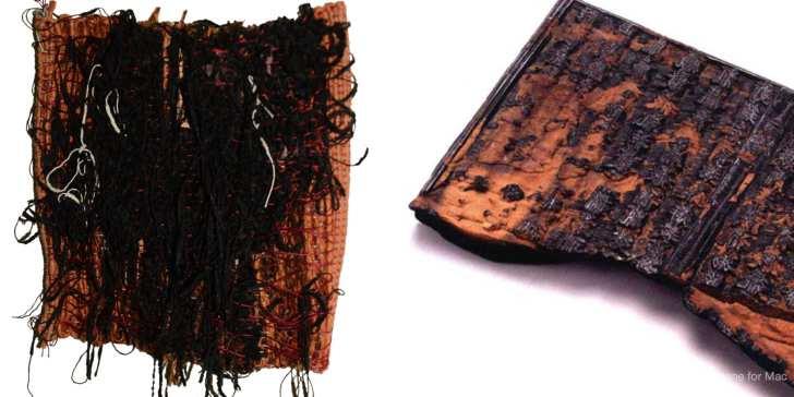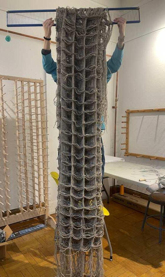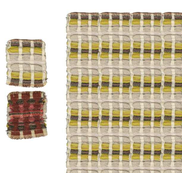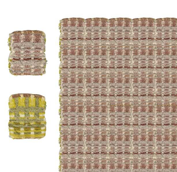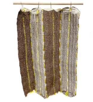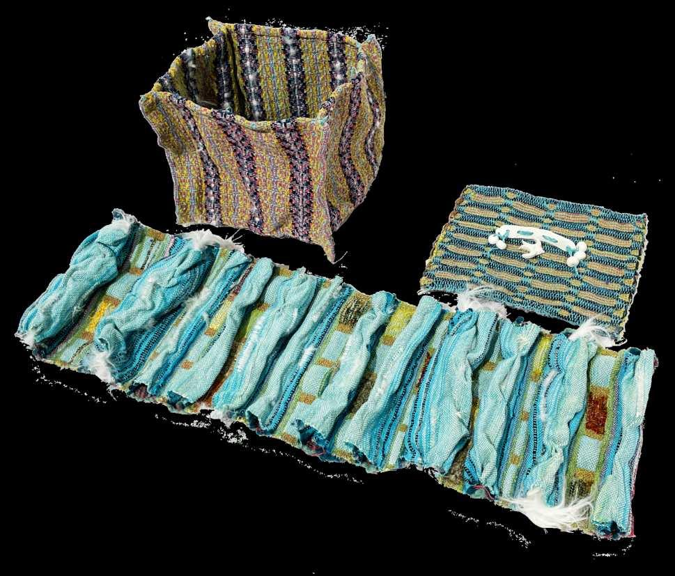 Pieces woven on 昀氀oor loom with off-loom manipulation, 2022