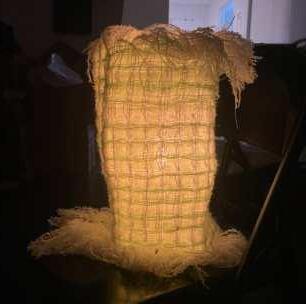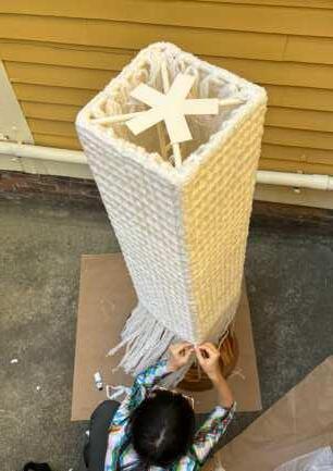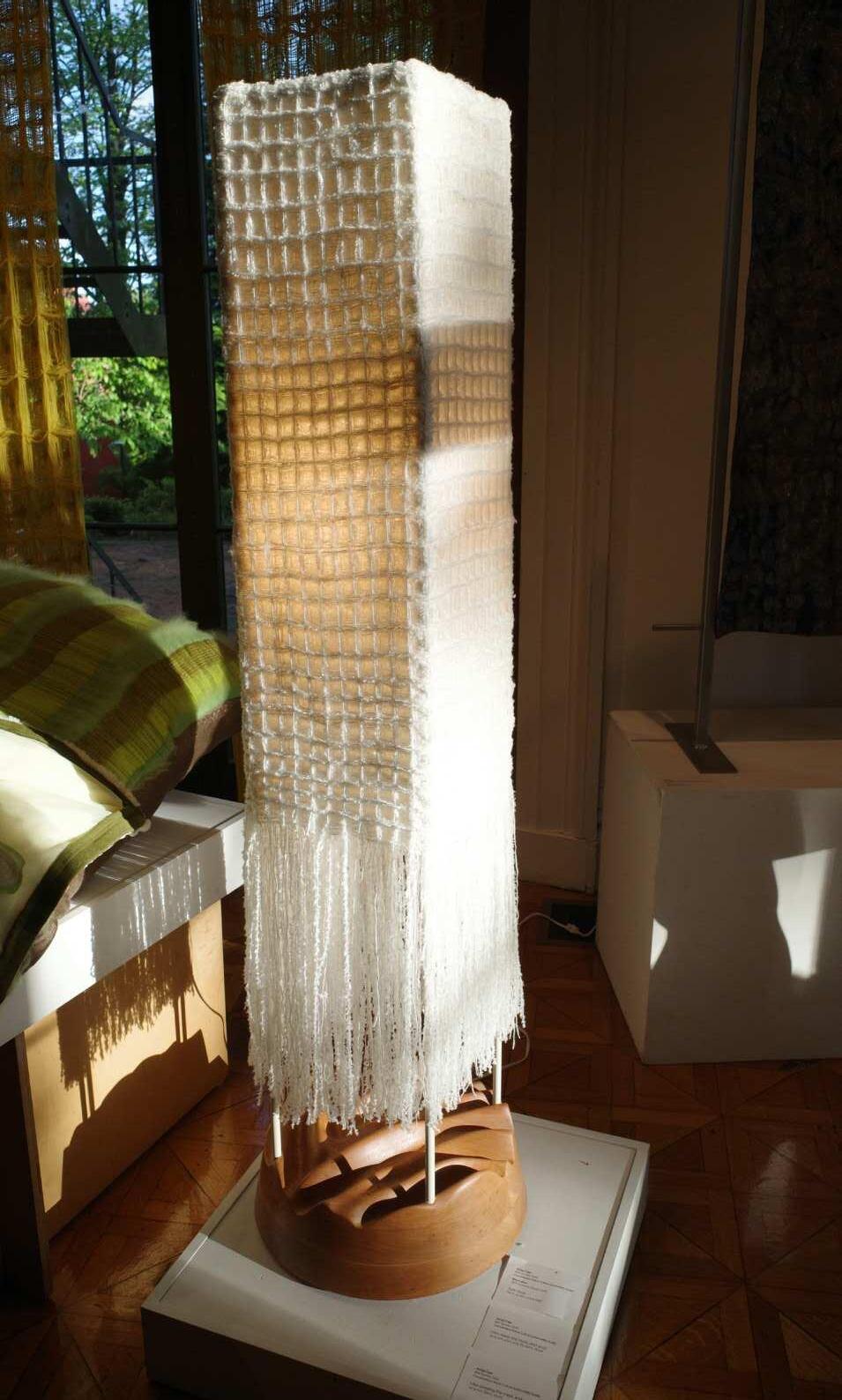Collaboratively constructed by Keyu Zhu and me, this floor lamp emits a soft glow from within. The textile and wood base shimmer beautifully when bathed in sunlight, casting delicate shadows. Its significant height creates a transitional glow, adding an elegant touch to any space.