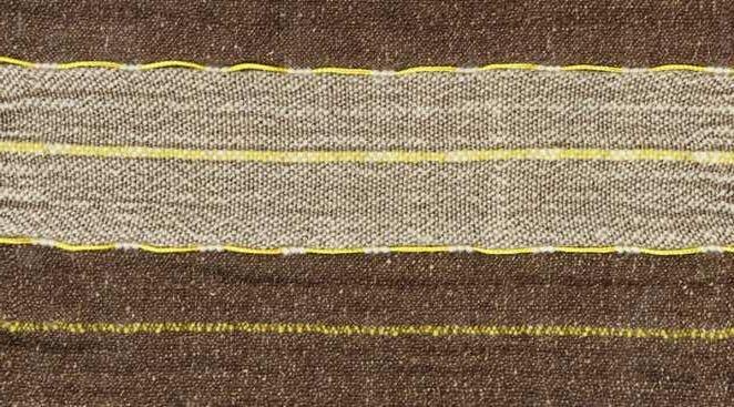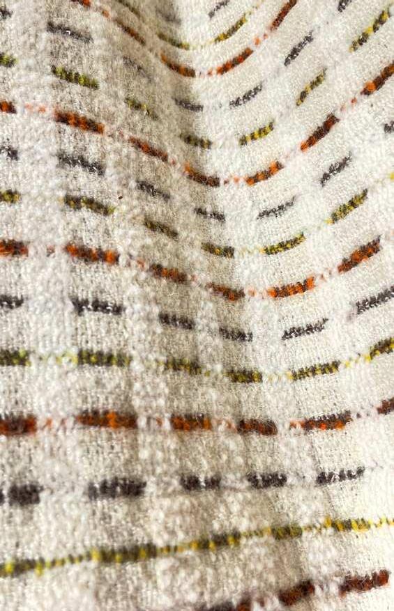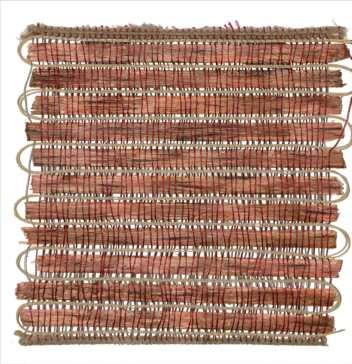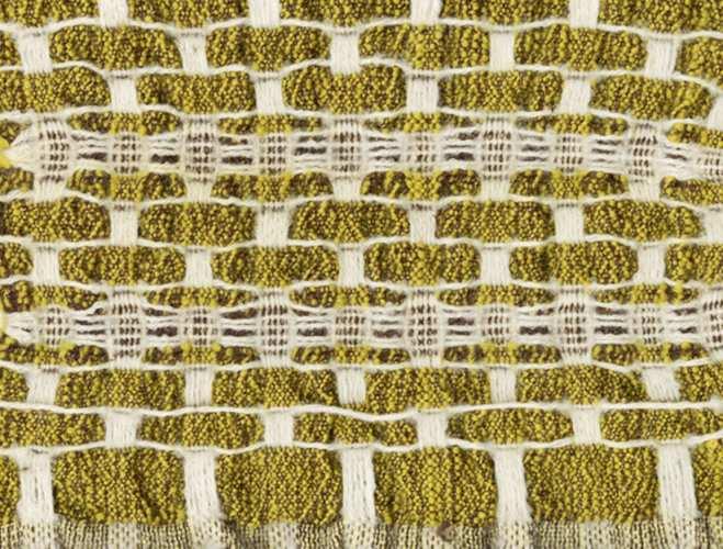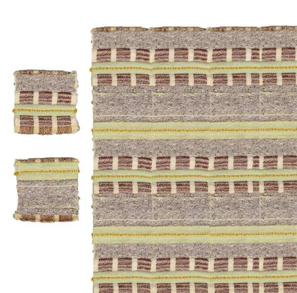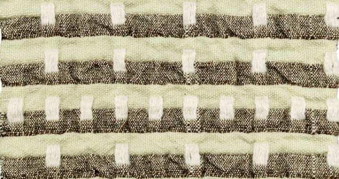 The wefts predominantly consist of natural 昀椀bers, speci昀椀cally wool and linen. The fabric is intentionally designed to undergo a shrinking process after washing, resulting in a denser, softer, and more durable texture suitable for upholstery.