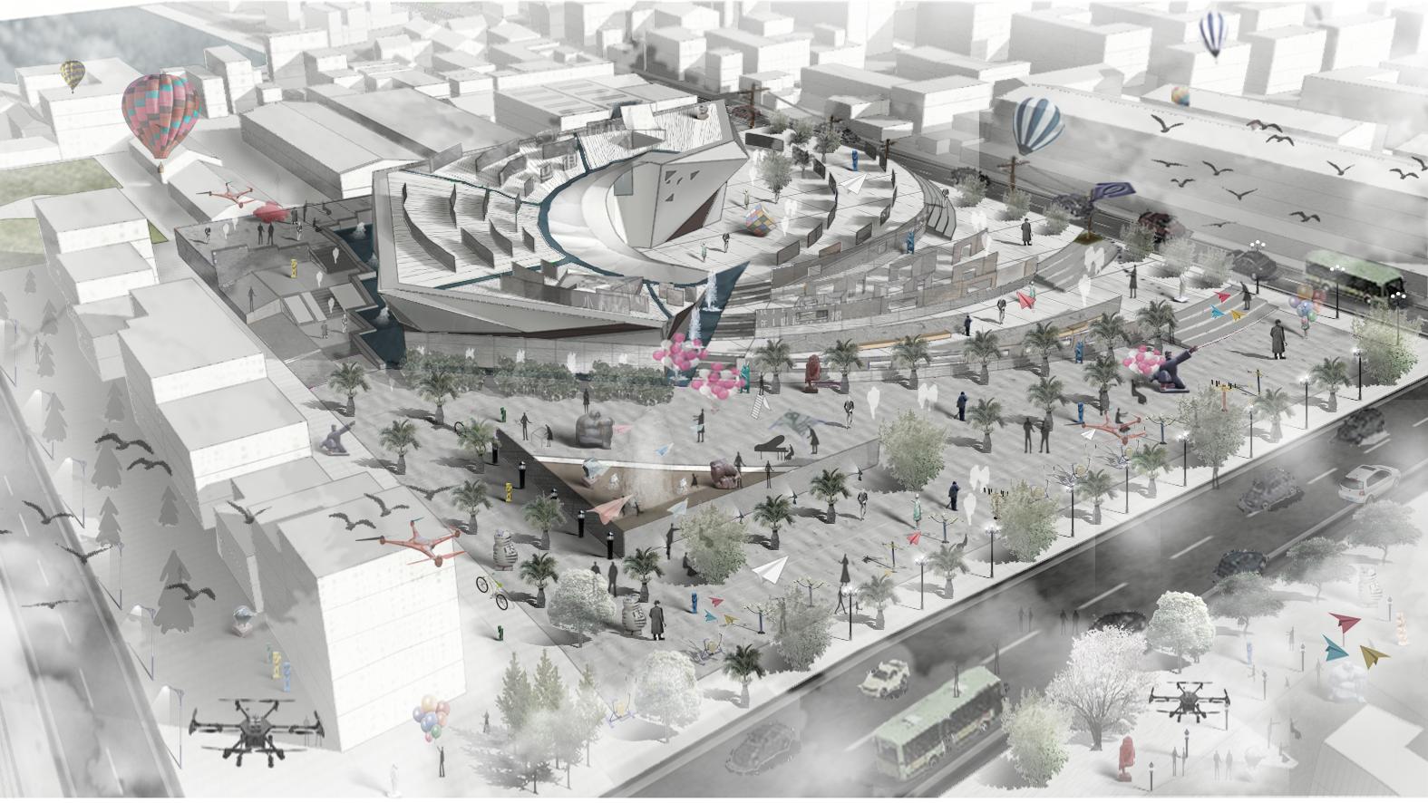 The perspective of the south square often shows the first impression of the passing people and vehicles on the building, and at the same time, it also assumes the scene of local people's activities in the front square.