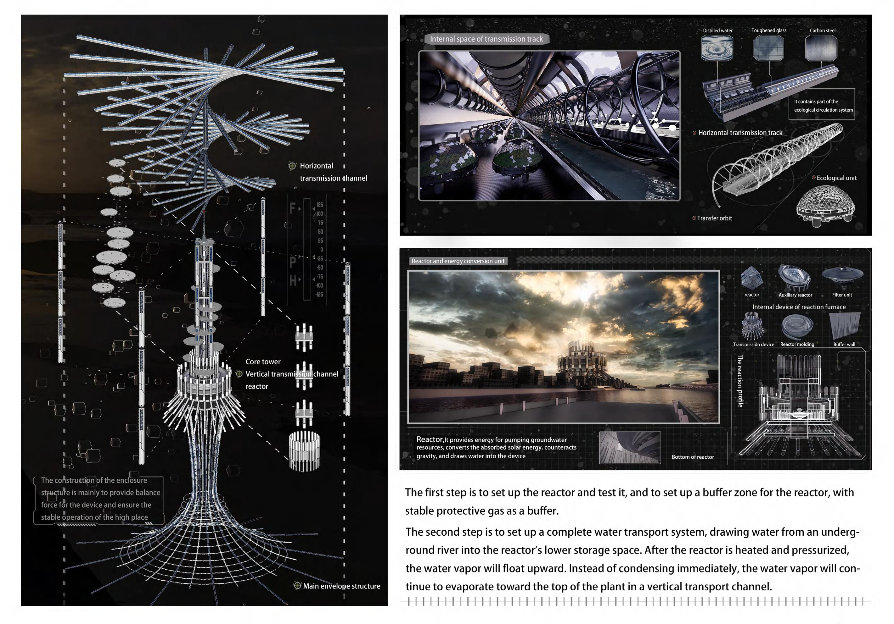 The drawings from other perspectives respectively show the indoor space and the courtyard space inside the building, which is intended to show the activity state of people in the space.