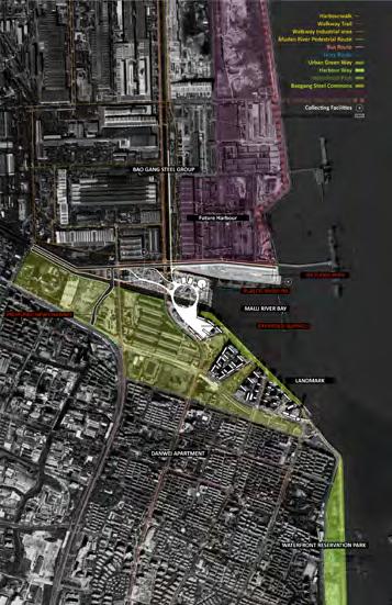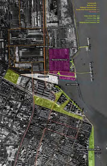 harbor cultural landscape, and leisure spaces. The river island, currently occupied by parking lots, is considered as an important urban block to exhibit the ambition of both public and government’s future plan to transform.