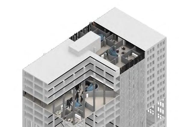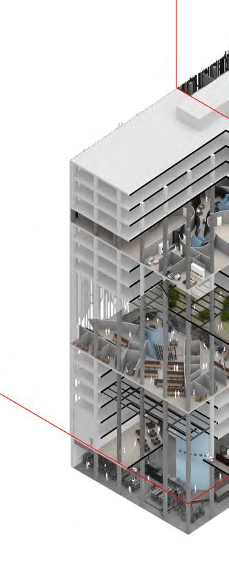 REBORN NAKAGIN TOWER ROOF TOP FOR MACHINE STEEL FRAME AND SYSTEMS GEOTHERMAL AND DATA VERTICAL CIRCULATION PODIUM FOR MACHINES CELLS ROOF TOP FOR PUBLIC AREA CONCRETE CORE SPIRAL STAIR-CIRCULATION CELLS Geothermal Core Geothermal Supply Infrastructure Core Data Center Electricity Water Parcel Sta�on Podium (Machine Ocuppied) Air Condi�on Terminal End 9 2322212019 24 18 876 1011 123456 121314151617 SOCIALIZATION WORK WORK RECREATION