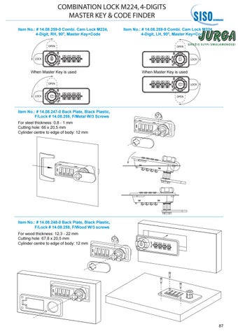 COMBINATION LOCK M224, 4-DIGITS MASTER KEY & CODE FINDER Item No.: # 14.08.259-0 Combi. Cam Lock M224, 4-Digit, RH, 90O, Master Key+Code