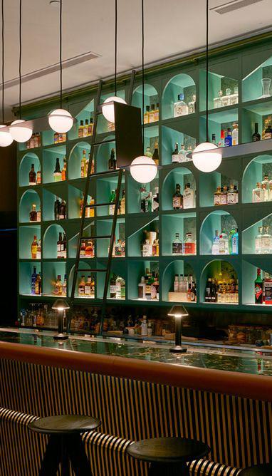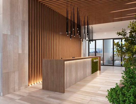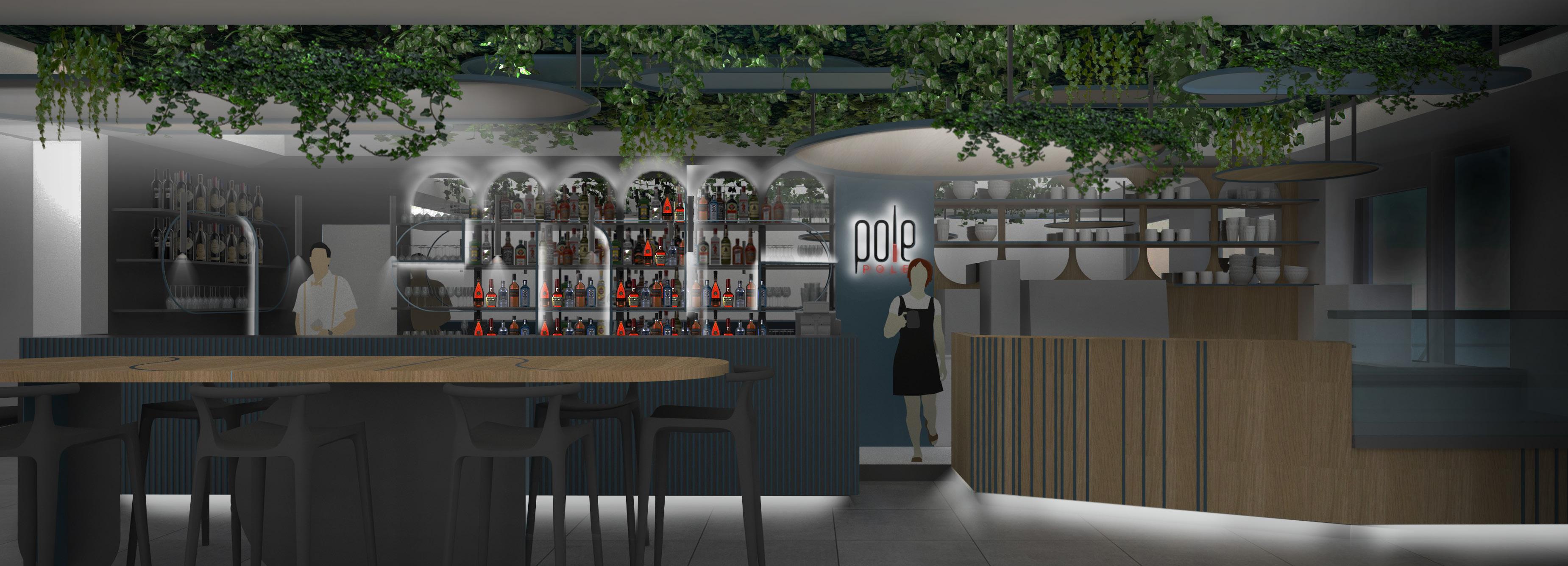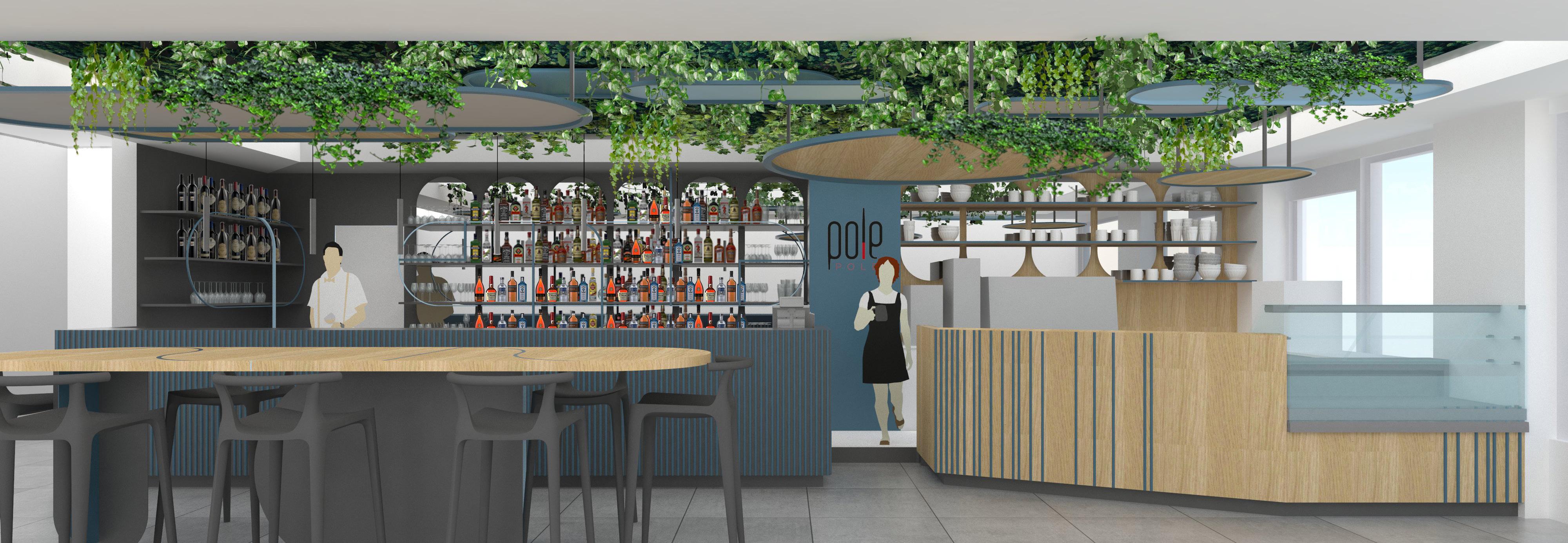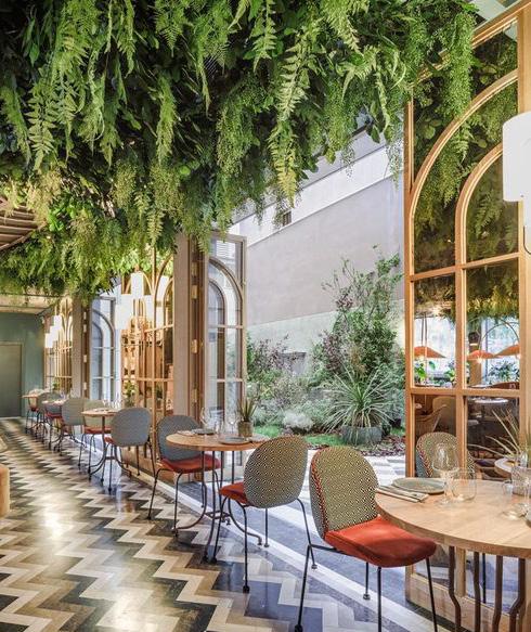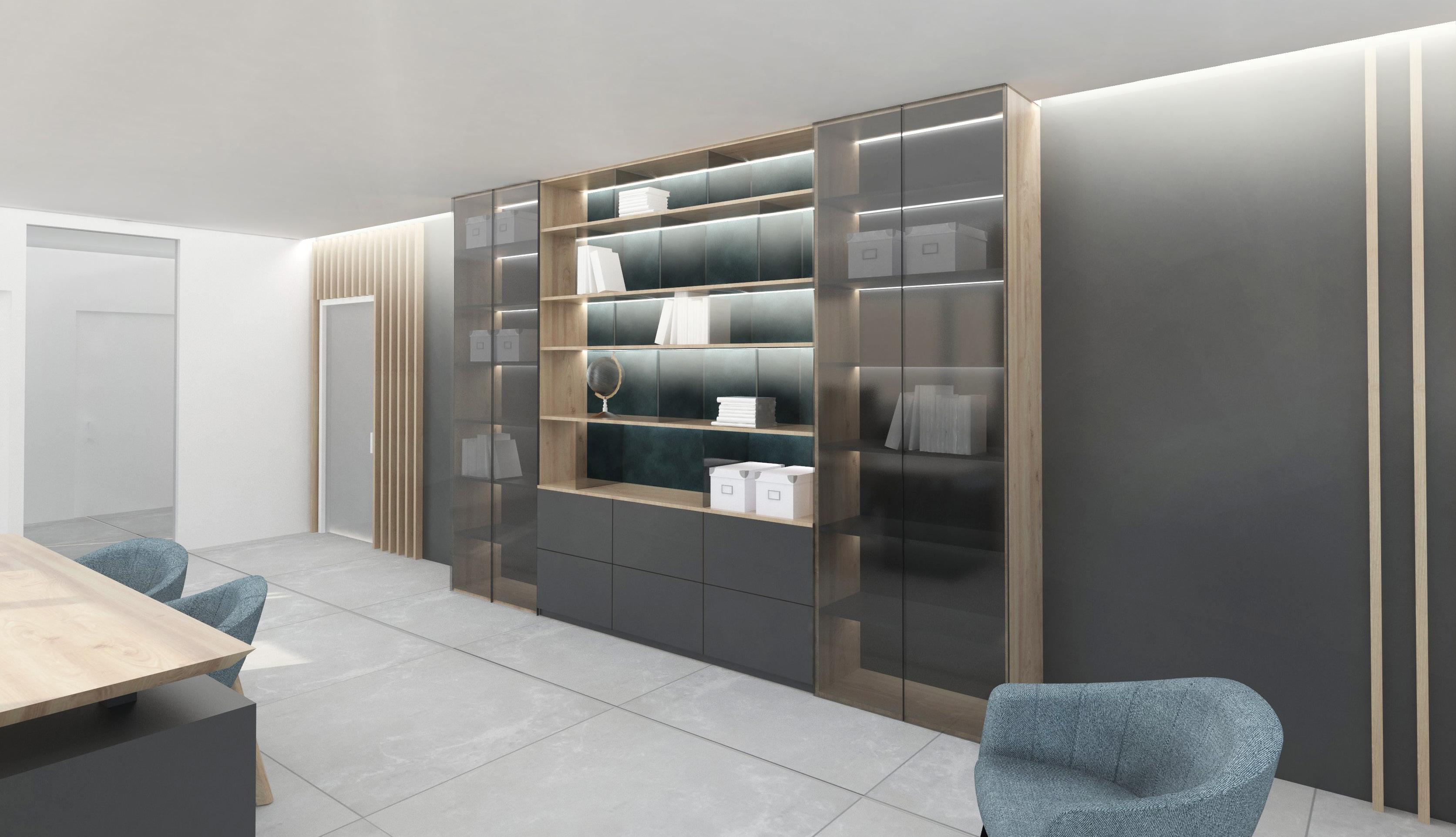 le pareti vetrate favoriscono l’ingresso della luce, listelli contribuiscono a creare un’ambiente più riservato