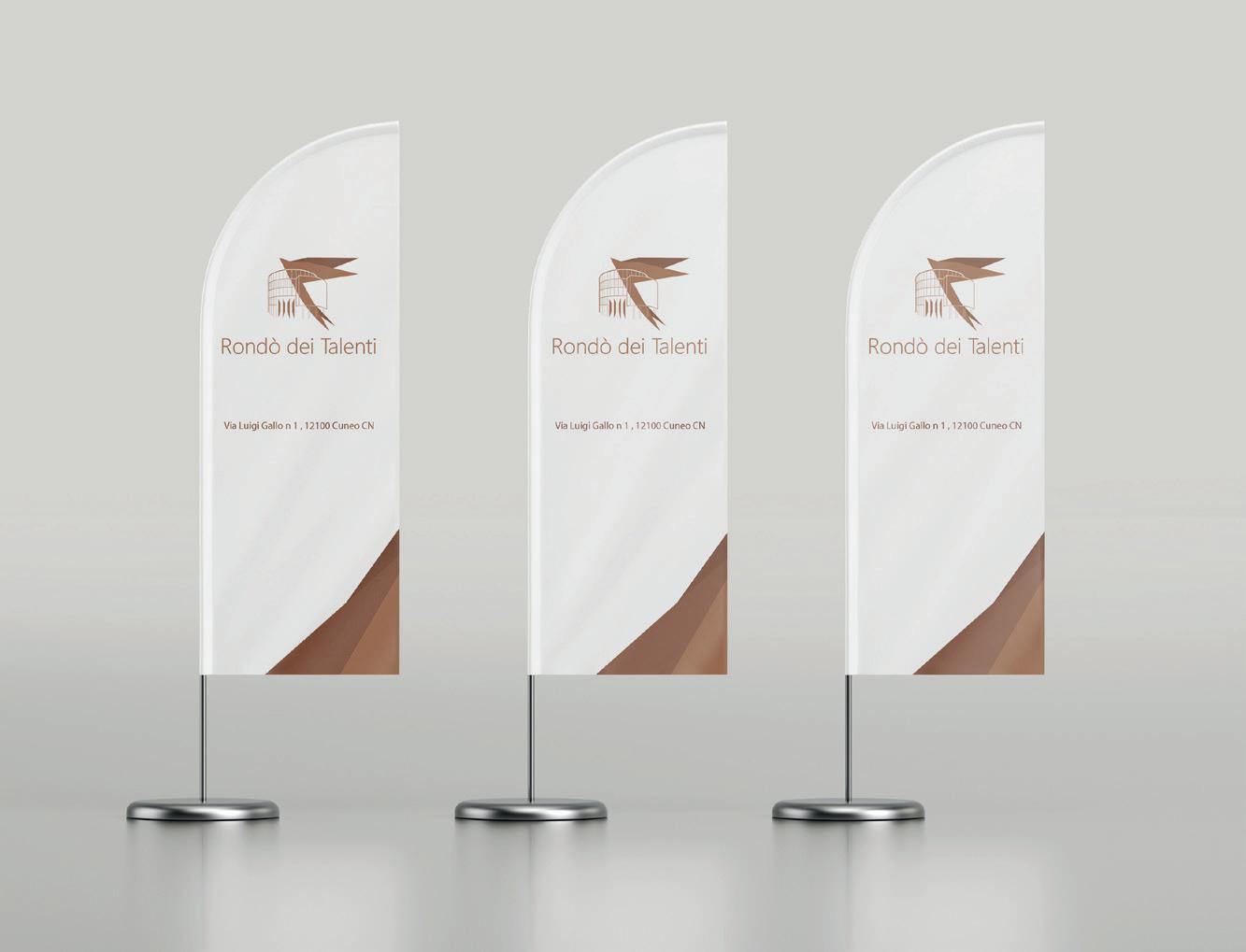 La rondine è coinvolta come principale emblema di libertà, intraprendenza, speranza e novità. Si tratta di una figura che meglio riassume i tratti delle giovani personalità, che verranno inglobate in un lungo processo di navigazione per realizzare i propri sogni, sostenute dalle loro solide ali che il nido ha provveduto a formare. Suo simbolo metaforico è così l’edificio, in quanto luogo di formazione e preparazione dei futuri talenti, perché si sa senza forti ali le rondini non volerebbero così lontano. Questi volatili costruiscono i loro piccoli rifugi con la terra, il fango e l’erba, elementi naturali che simboleggiano la vita. Su questa considerazione si basa la scelta cromatica del marrone. Le linee e le geometrie semplici ed eleganti dell’edificio si incontrano con le forme dell’animale, le quali conferiscono continuità al progetto “Città dei Talenti ”.