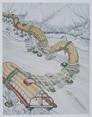 L' installazione rappresenta una barca, simbolo del viaggio, metafora che intreccia i destini di tanti naviganti del passato e del nostro tempo presente. Le grandi vele sono formate da sbarre, perchè elementi fondamentali della realtà carceraria, mentre il fondamento della nave vuole ricordare che la cultura e l'arte sono le basi di qualsiasi civiltà.