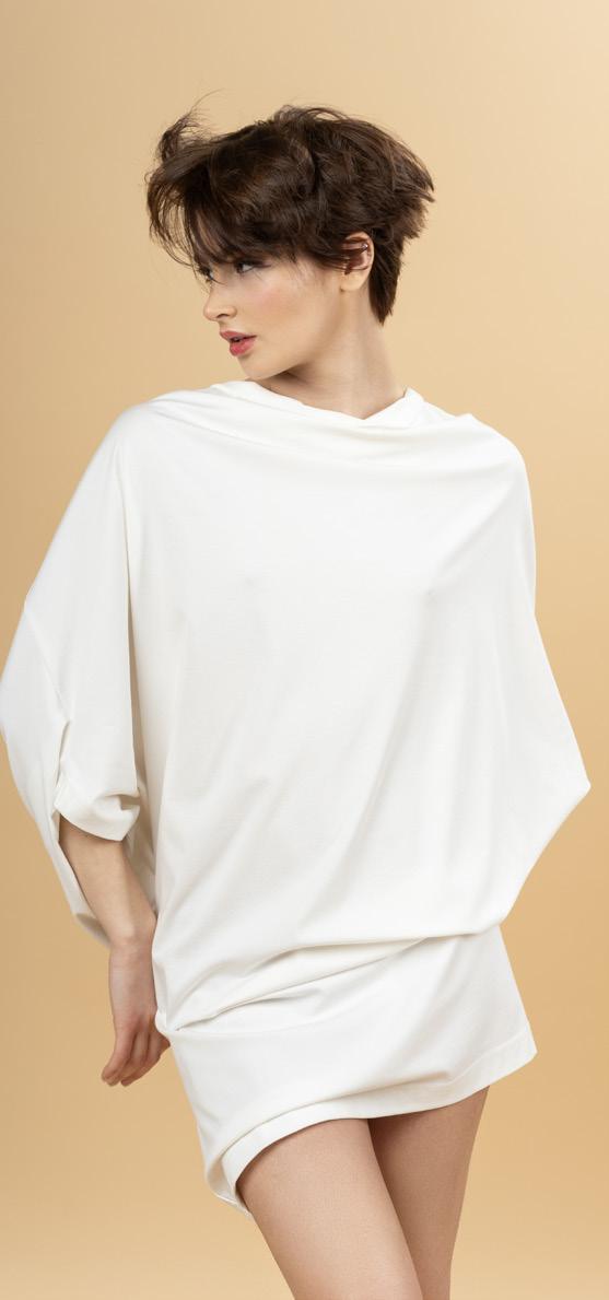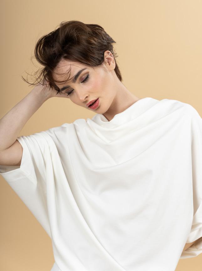 Luxury fabrics such as silk, cotton, light cashmere embrace the body with sensuality and softness, underlining the importance of ethical and sustainable production. It is an elegance that stands out for its composure and its abstract femininity, where sobriety becomes synonymous with refinement.
