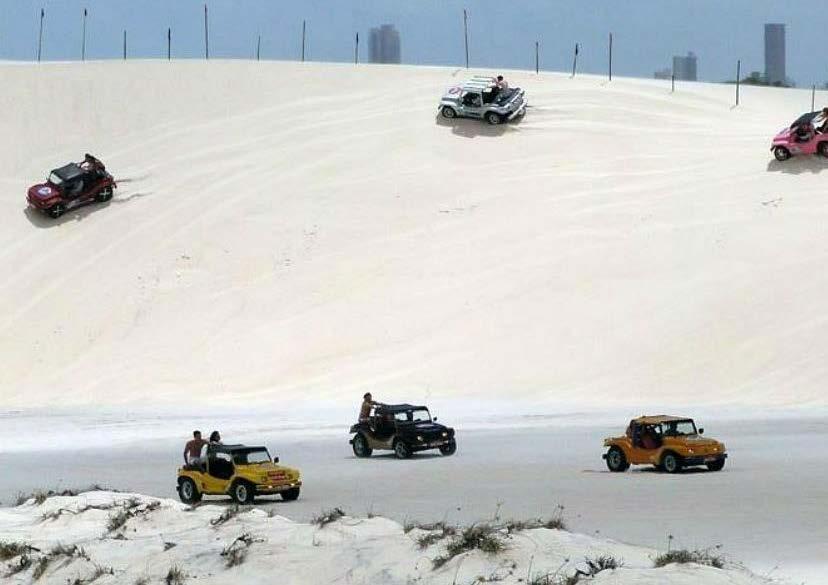 As Dunas de Genipabu são um espetáculo à parte. O passeio de buggy é o mais famoso da região — e pode ser feito “com emoção” ou “sem emoção”. As lagoas, o céu aberto e o vento do litoral compõem um cenário perfeito para aventura e contemplação.