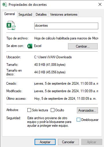 Dar clic en el botón derecho del archivo descargado y seleccionar PROPIEDADES
