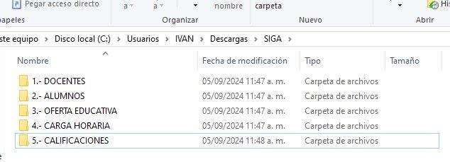 Nota: Se recomienda "CREAR UNA CARPETA EXCLUSIVA" para mover el archivo Excel descargado y poder identificar por Ciclo Escolar y No. de Carga , para una mayor organización de la información.